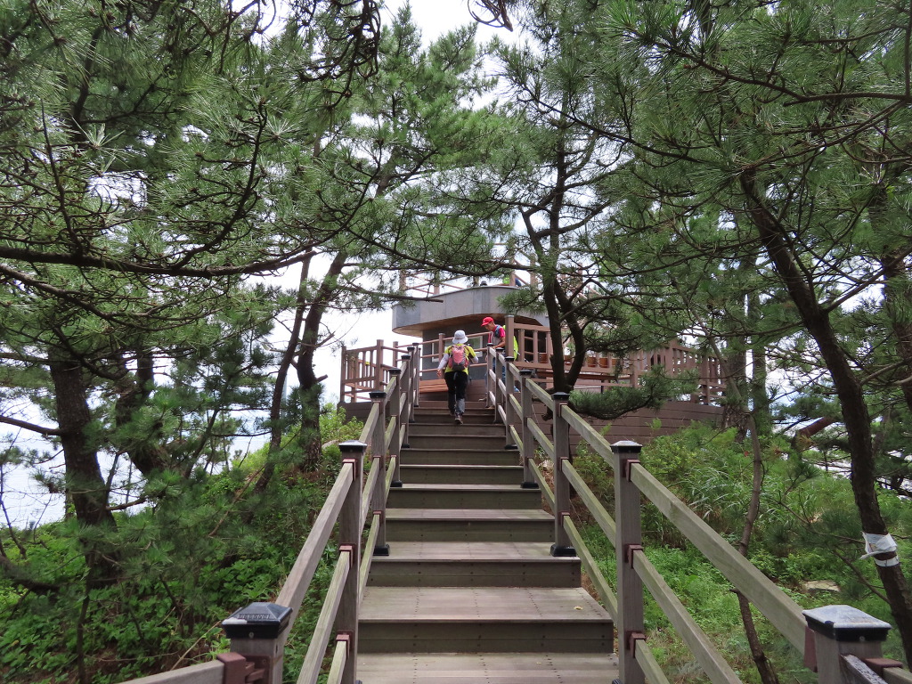 ▼ 등대를 지나자마자 길은 둘로 나뉜다. 왼편은 서낭바위 해변, 먼저 능선의 끄트머리에 걸터앉은 전망대부터 올라본다. 군(軍)의 해안초소를 개조해 이층짜리 전망대를 만들었는데, 아래층을 그대로 놓아둔 걸 보면 아직도 야간에는 초소로 사용하고 있나 보다.