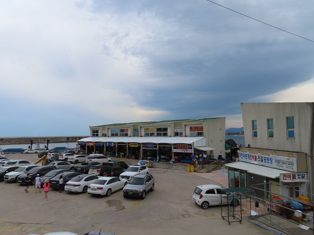 공현진해변을 나선지 10분, 도로변 공터에 산악회 버스가 주차되어 있다. 주차할만한 공간을 찾다보니 그랬겠지만 47코스의 종점인 가진항(加津港)은 조금 더 걸어야만 이를 수 있다. 오늘 트레킹은 3시간 15분이 걸렸다. 핸드폰 앱에 찍힌 거리는 11.51㎞, 47코스의 공식 거리인 9.7km보다 2㎞ 가까이를 더 걸은 셈이다. 서낭바위와 왕곡마을 등의 명소를 자세히 살펴보느라 정규 코스를 많이 벗어났던 모양이다. 참고로 해파랑길 안내도와 스탬프보관함은 ‘가진항 입구’ 삼거리에 설치되어 있다.