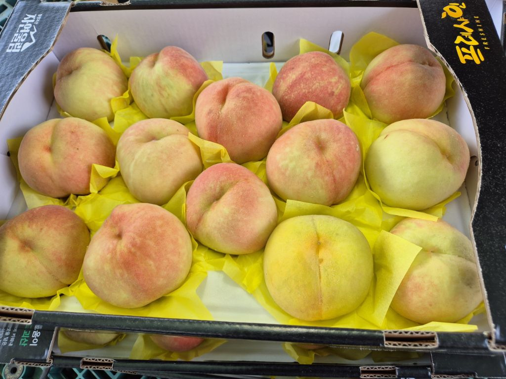 황도하고 백도가 있는데 요즘 복숭아 인기가 좋아요. 복숭아없어서 못 팔정도로 당도가높아서