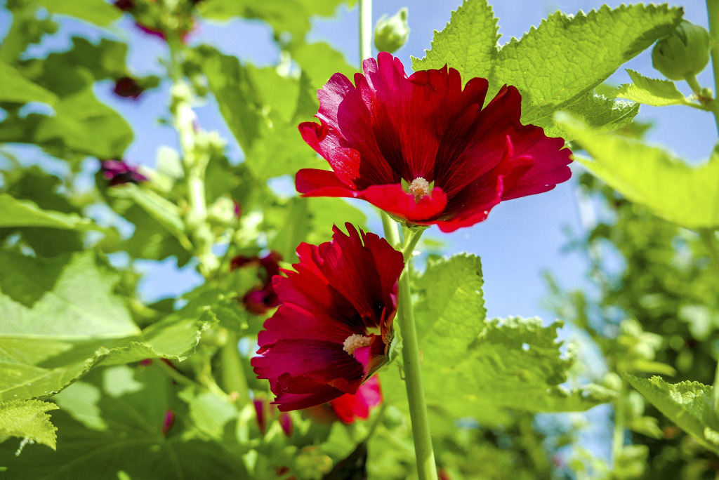 뒷 뜰에 접시꽃을 심어놨는데