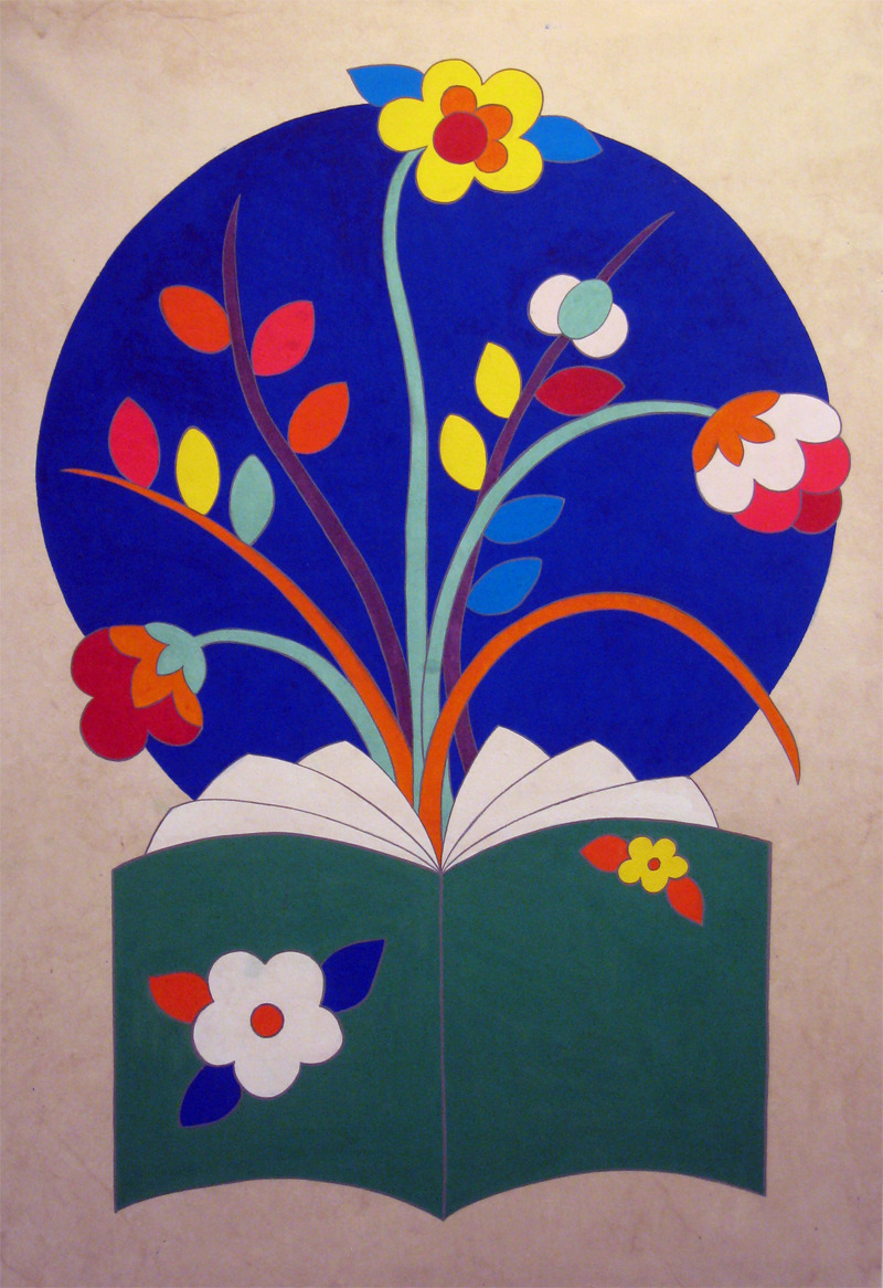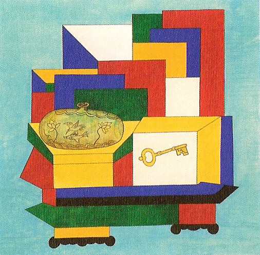 책을 오방색으로 표현하며 장군도 있고, 열쇠도 있습니다. 책을 통하여 지혜에 접근할 수 있다는 의미로 받아들였습니다.