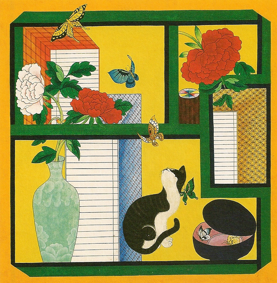 민화속에 조선 분청사기, 청화백자, 철화백자가 아니라 현대적인 색감을 가진 도자기가 그려져있습니다.
