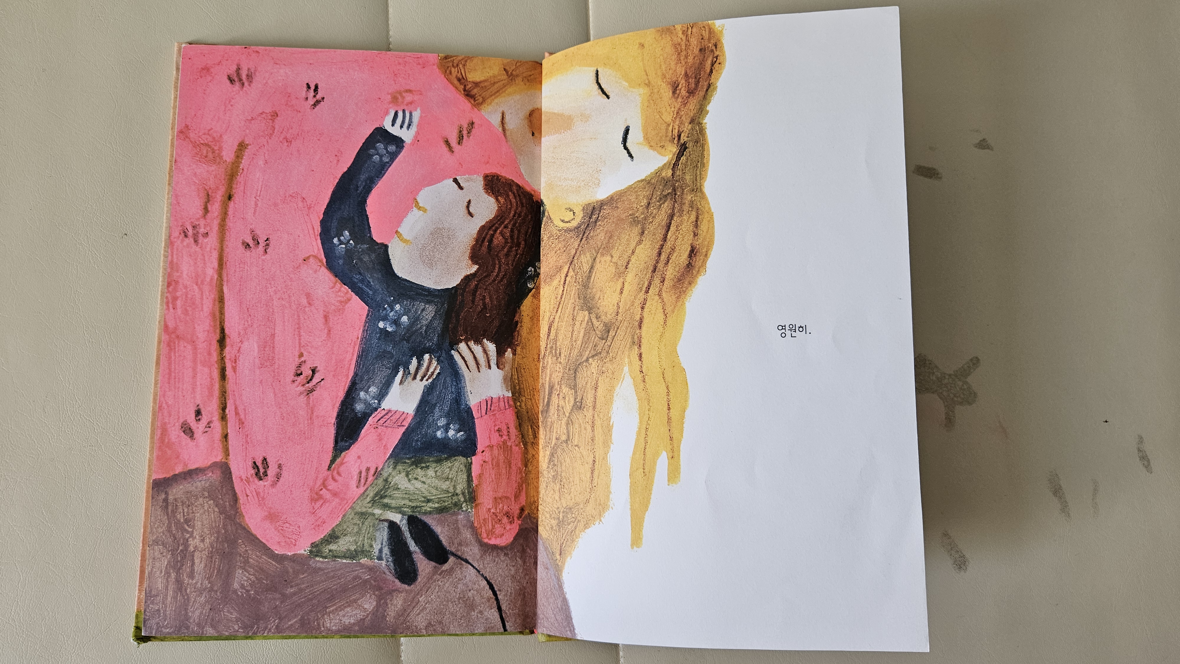 엄마는 첫 장의 새가 손을 떠나는 모습이 인상적인데 서현이는 마지막 장의 아이를 안아주는 모습이 기억에 남는다고해요.
