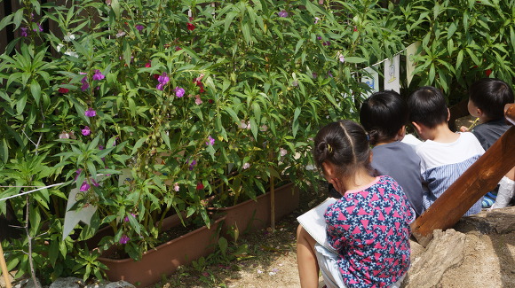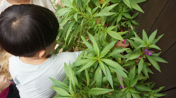 쑥쑥 자란 봉숭아를 관찰해 보고,