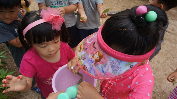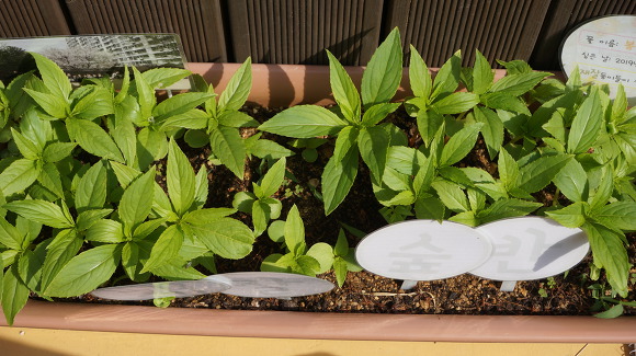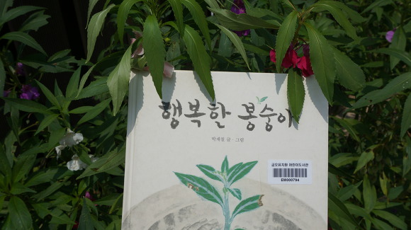 봉숭아를 살펴보며 "잘 자라라~" 말해주었답니다.
