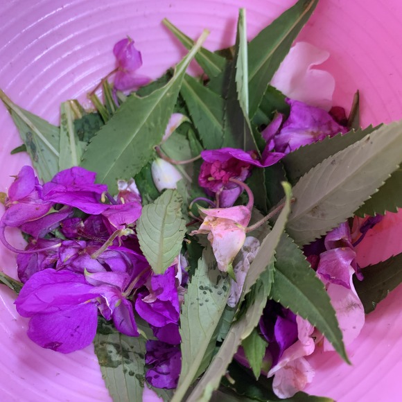 봉숭아 꽃과 잎을 뜯어