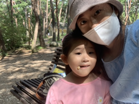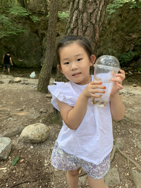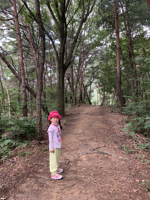 엄마가 오르던 뒷산을 함께 올라보기도 했는데 인적이 드문 곳이라 무서워하기도 하고 초입부터 힘들어 했지만 두발로 열심히 걸어서 등산도 해봤어요,산에서 먹을 간식도 가져갔는데 모기떼들이공격을 해서 힘겹게 먹었던 순간도 있었어요 ㅋ