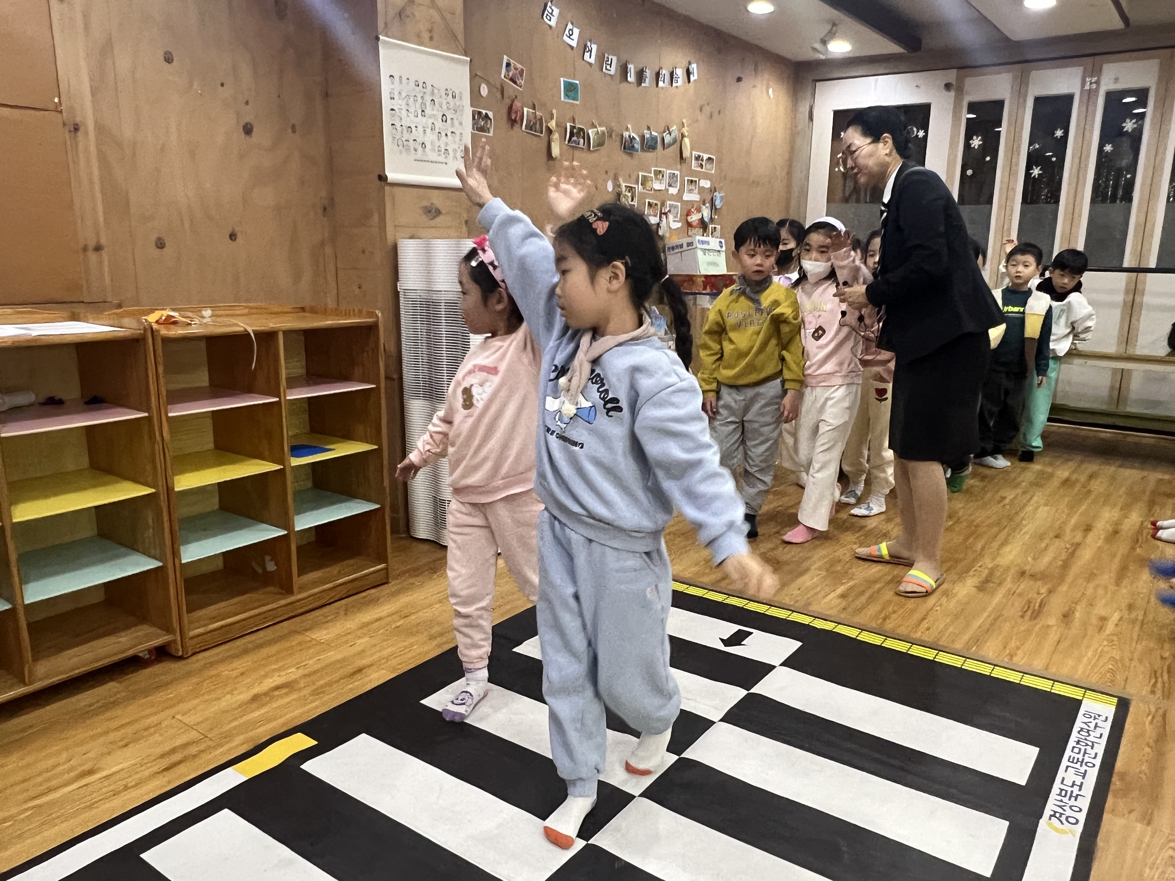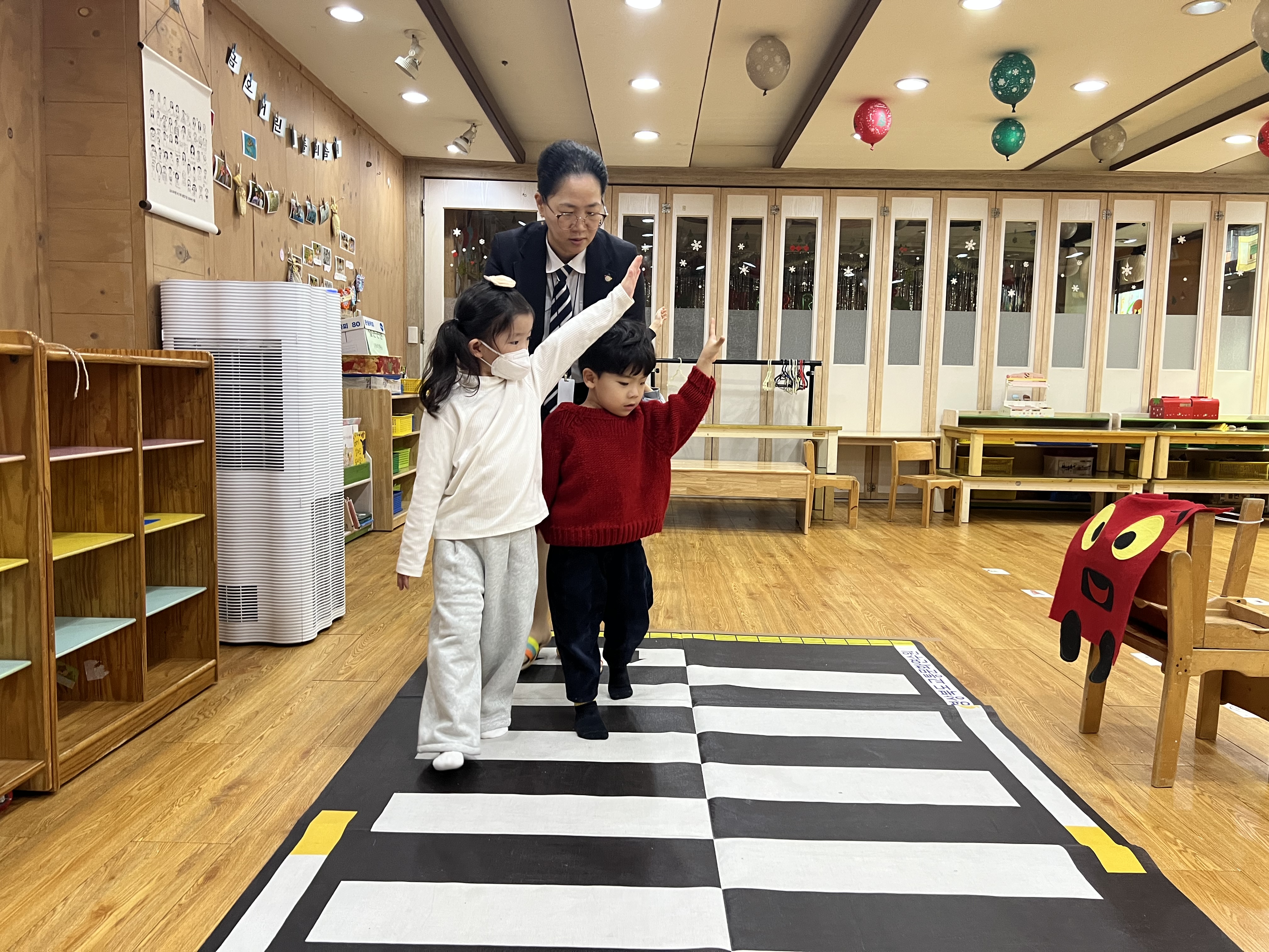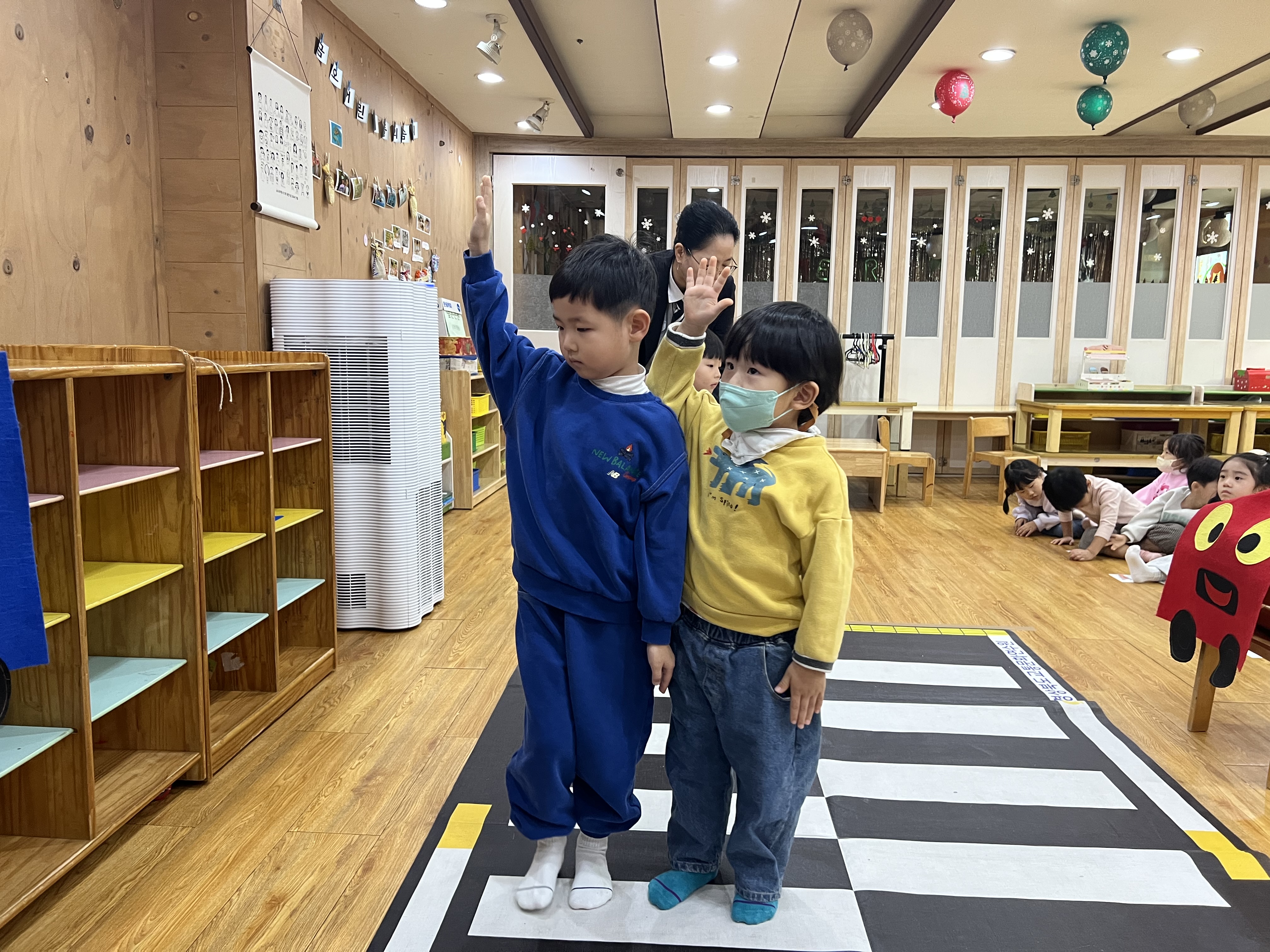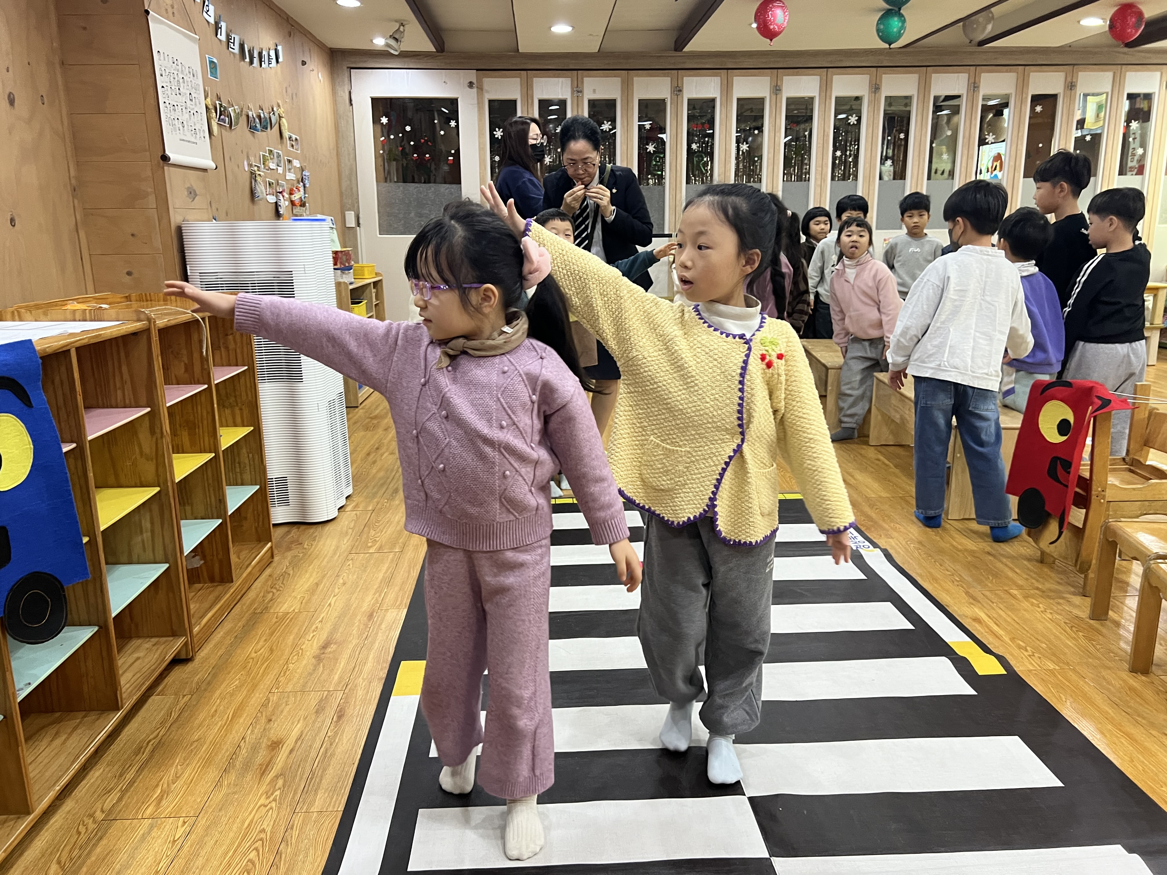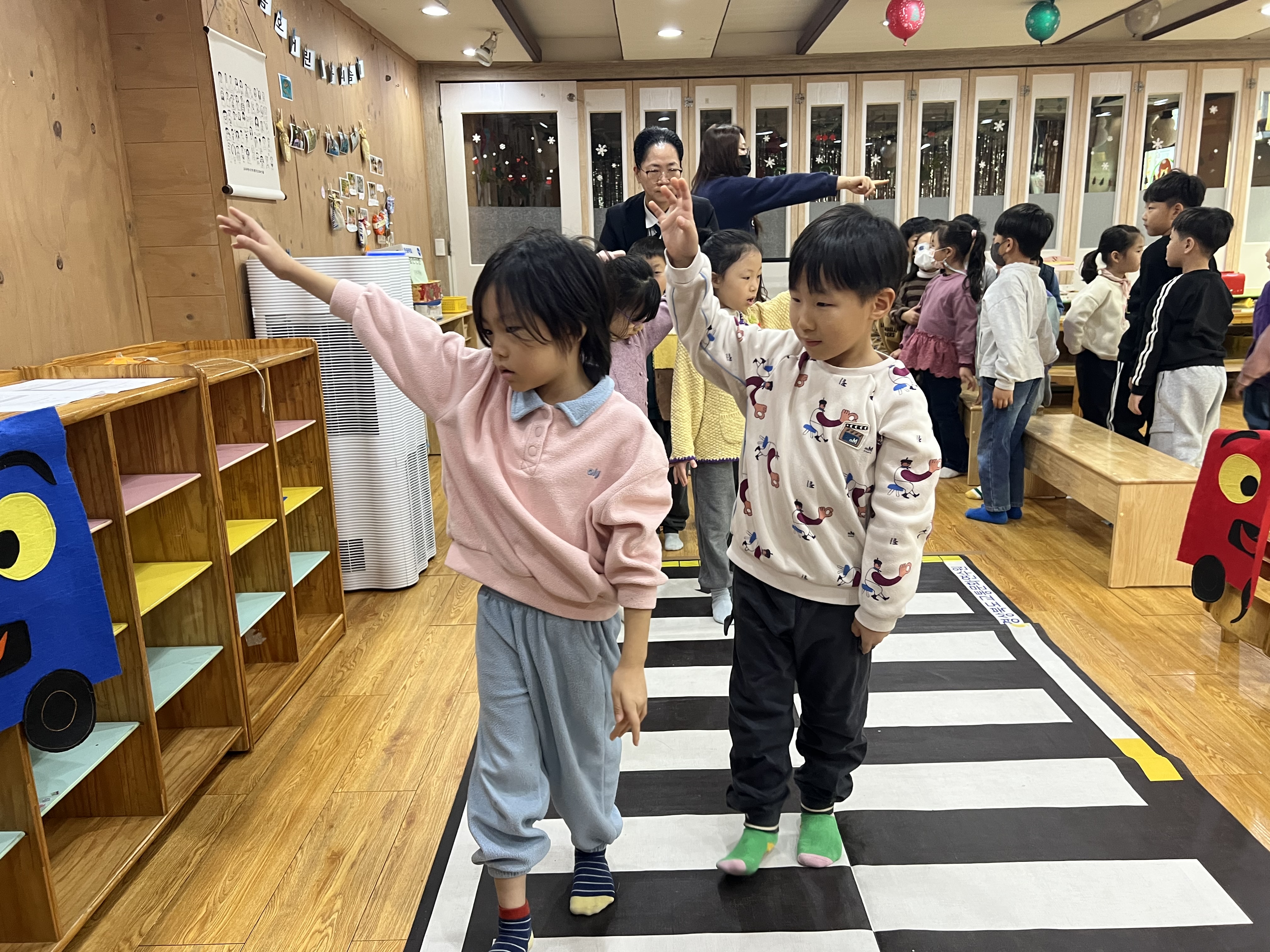 이야기를 나눈 후 6살 친구들도 직접 횡단보도를 건너보았어요!
