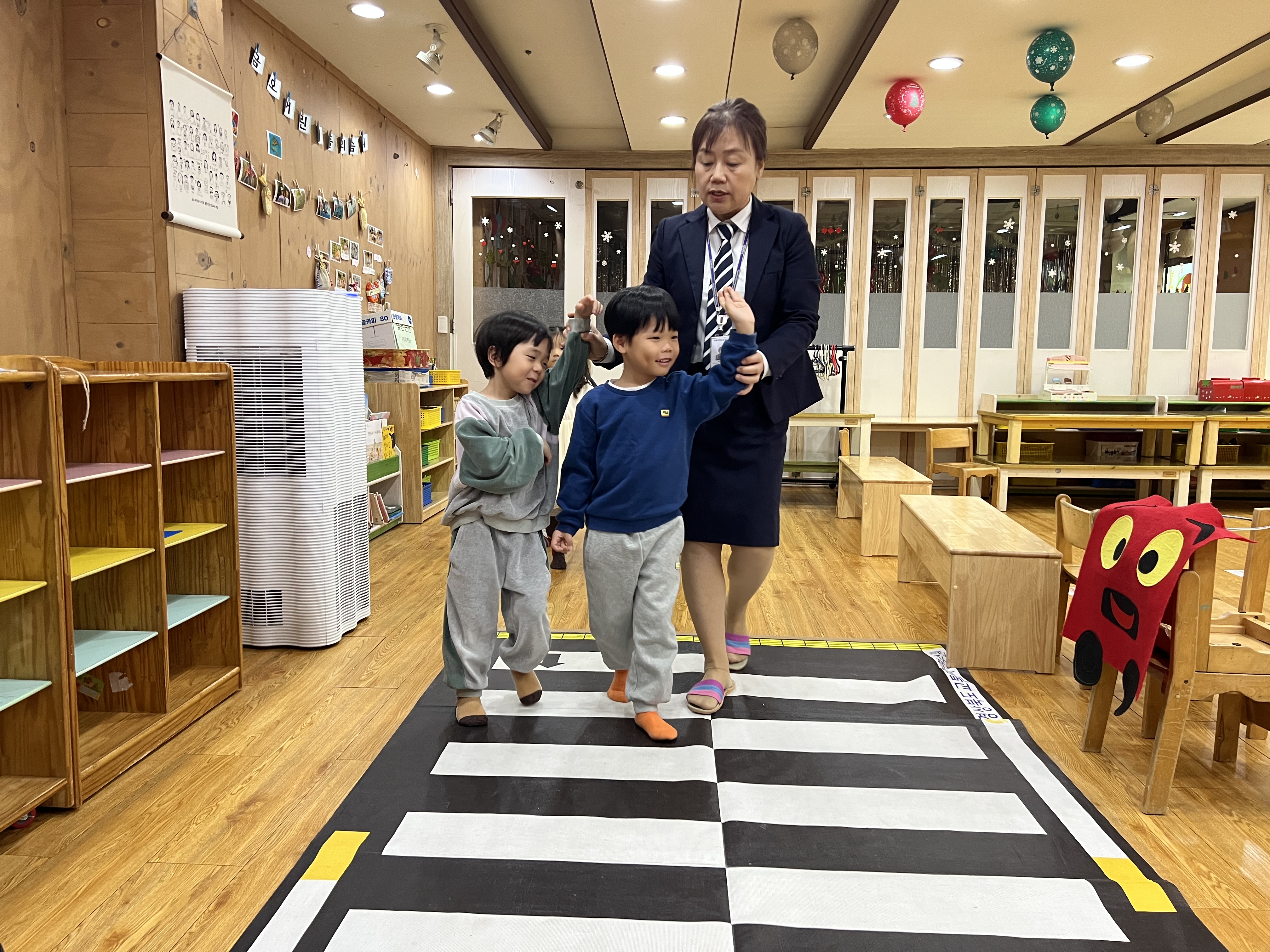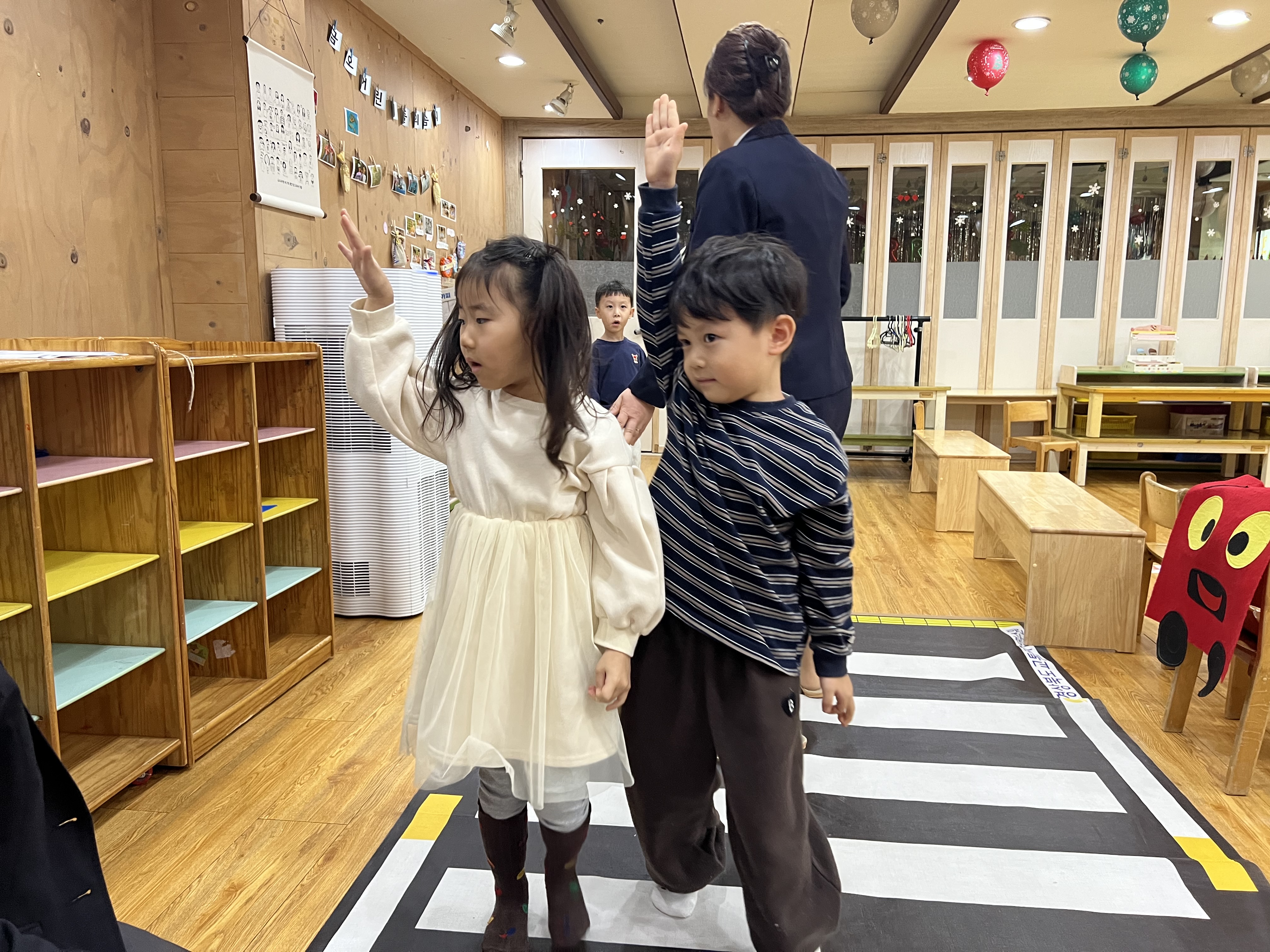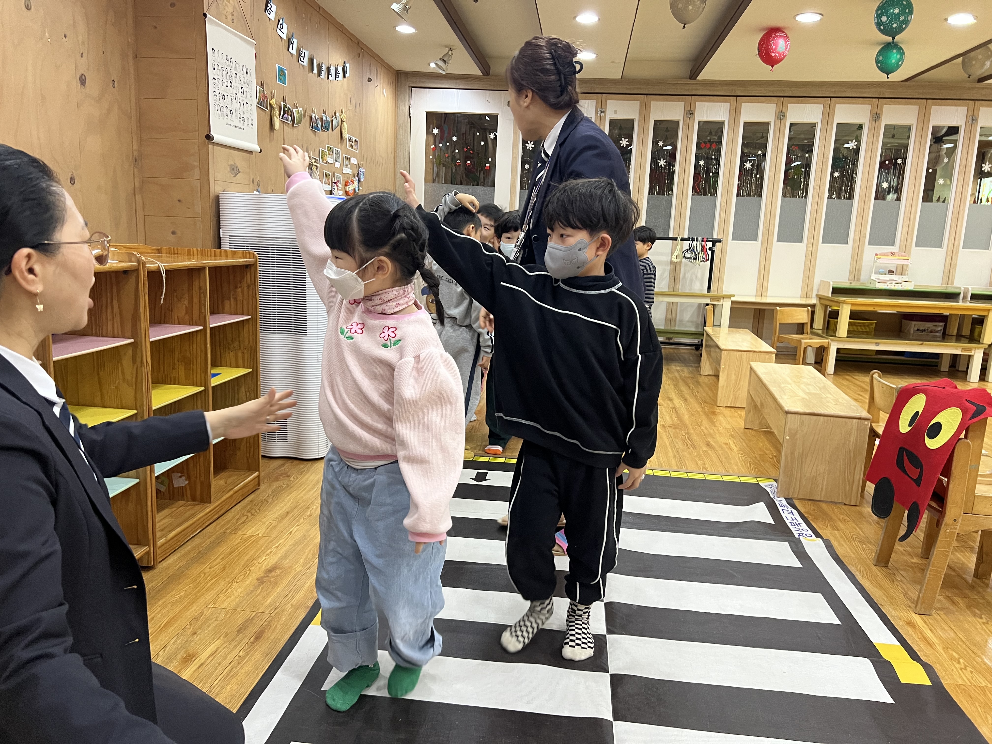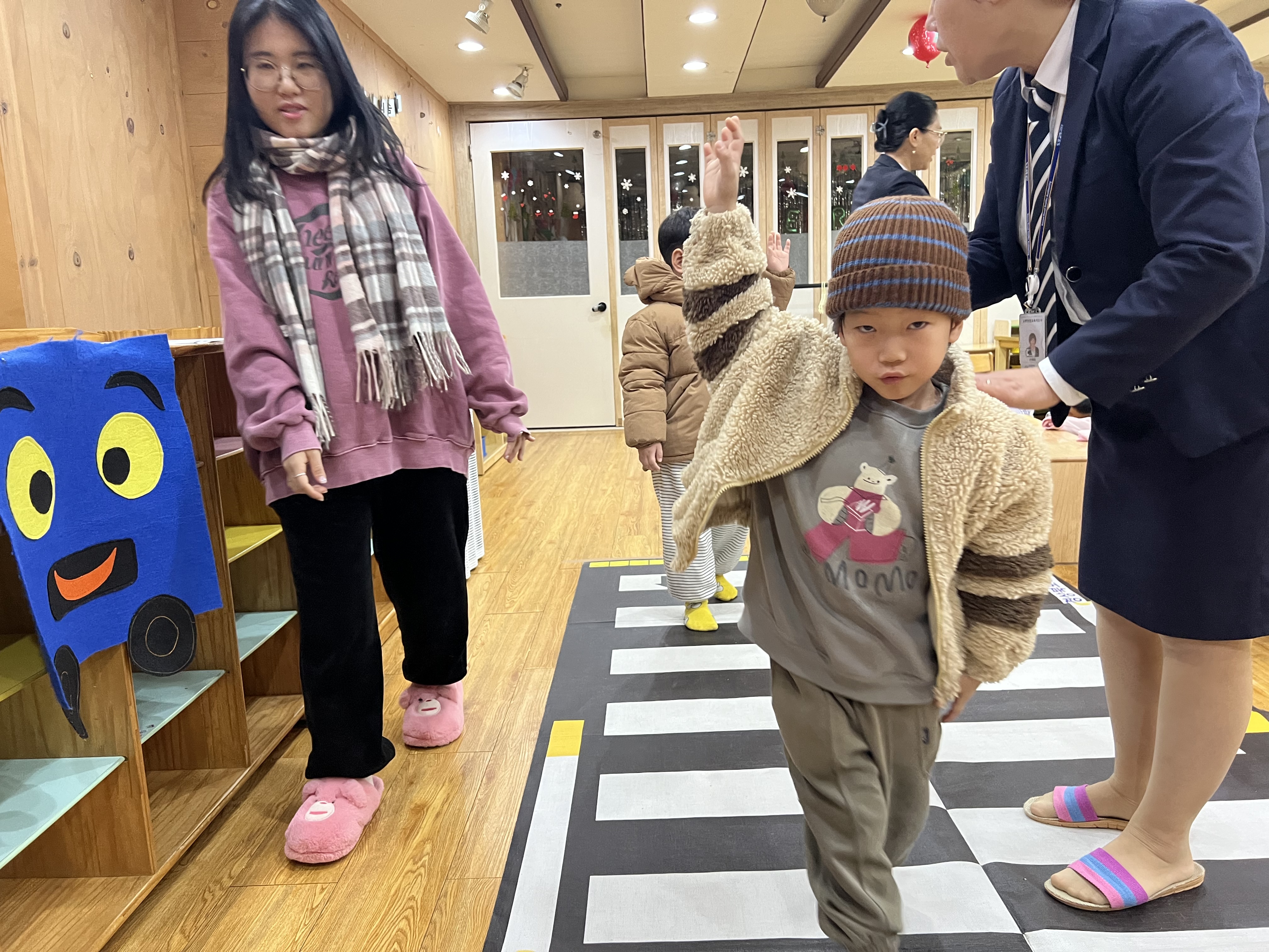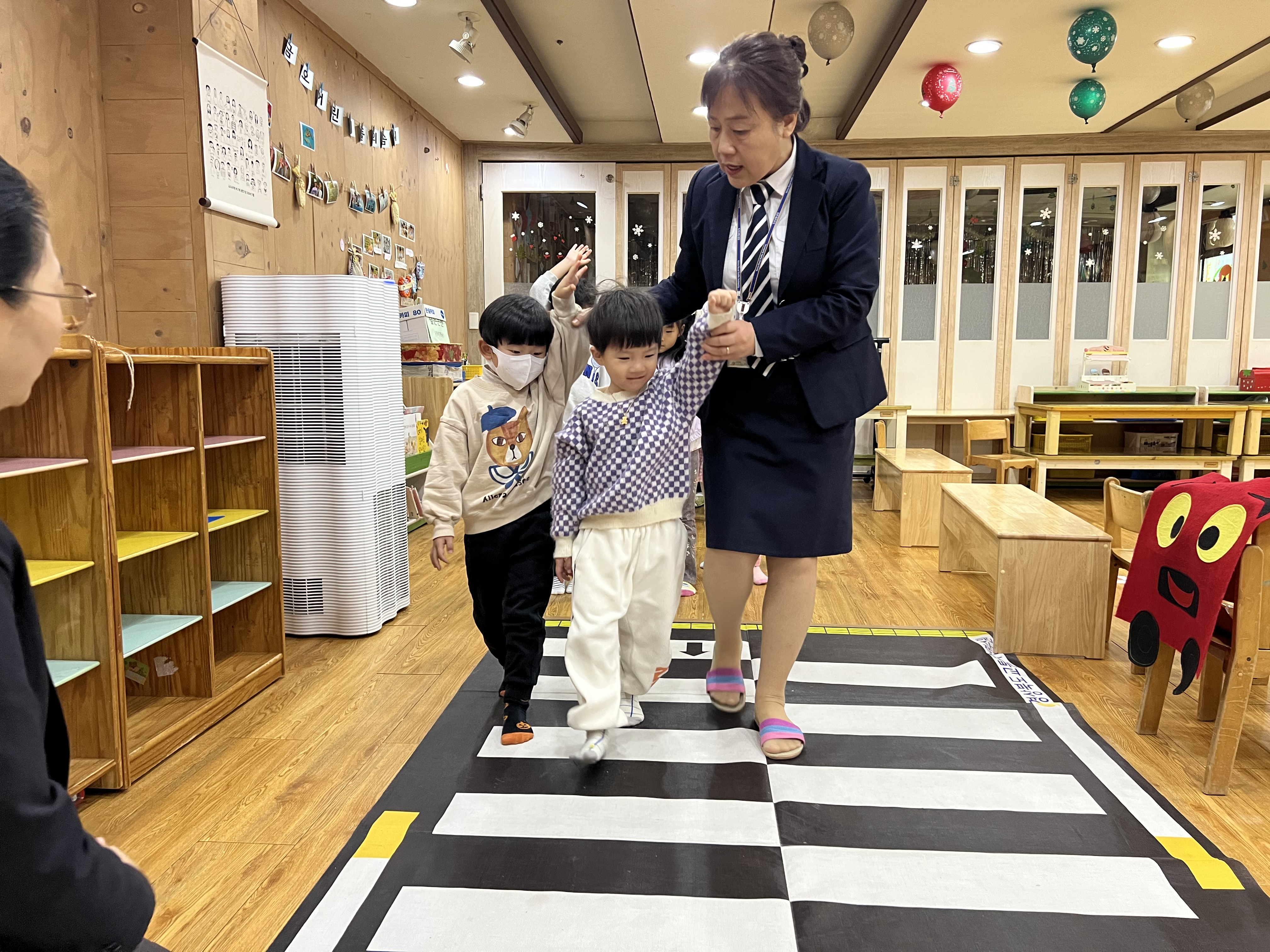 이야기를 나눈 후 6살 친구들도 직접 횡단보도를 건너보았어요!