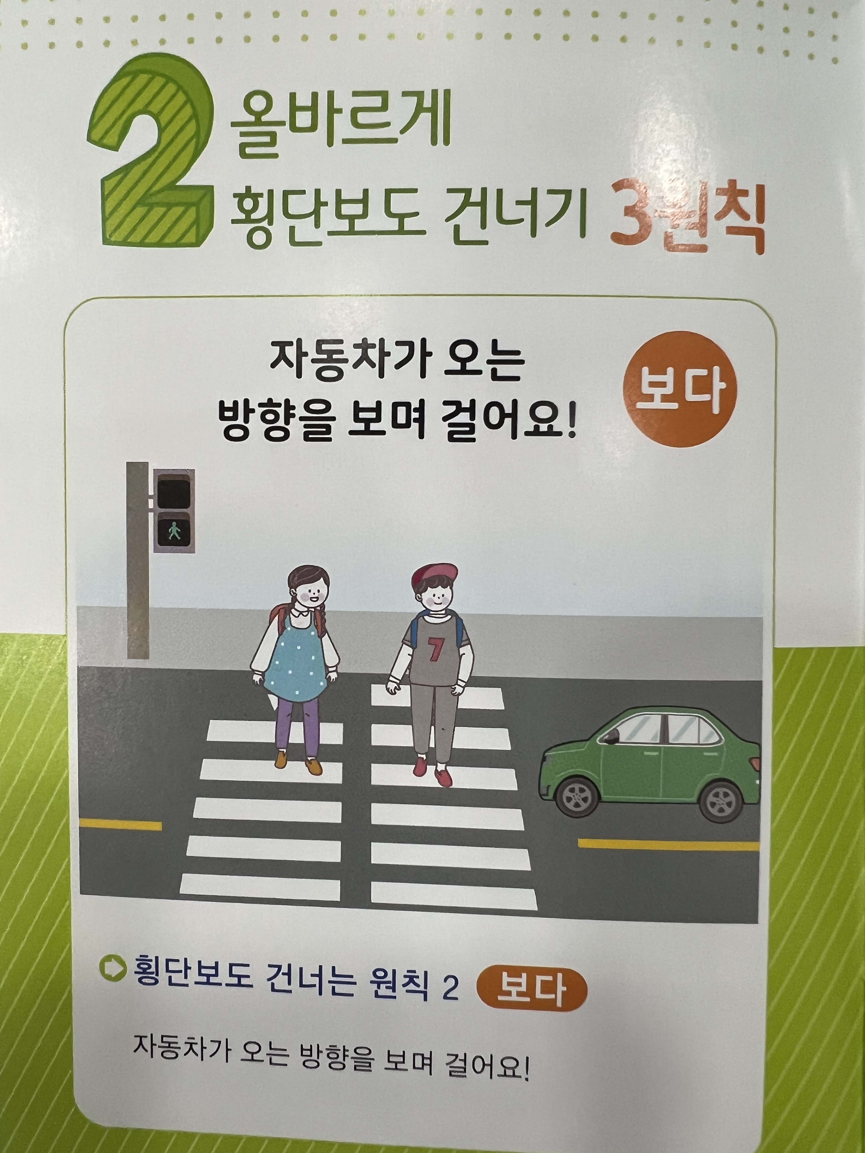 2. 차가 오는지 왼쪽 오른쪽 왼쪽 세 번 본다