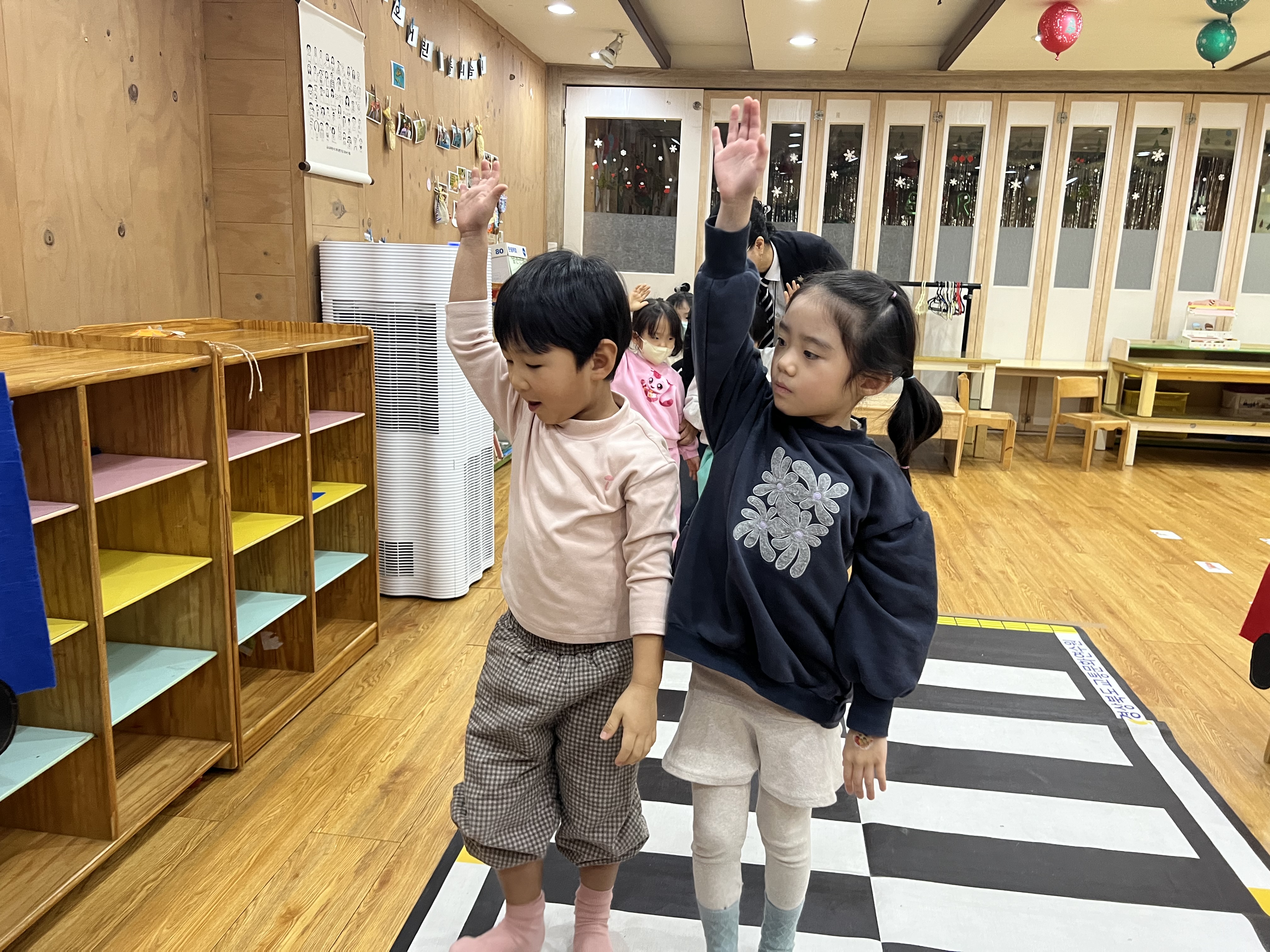 왼쪽 오른쪽 왼쪽 손을 들어 멈춰주세요!