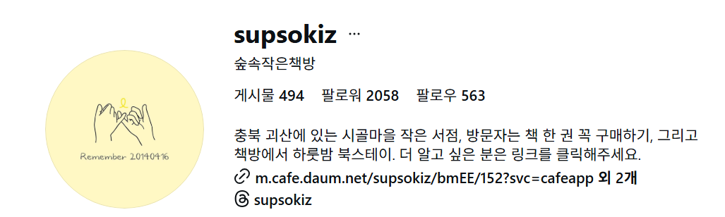 충북 괴산의 <숲속작은책방>도 적어놓습니다😆