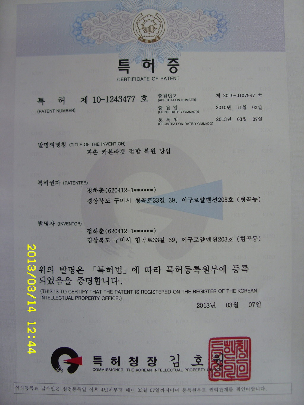 특허증(청금 수리 공법)-라켓수리천국 작성자청금|작성시간13.03.26|조회수1,936 목록 댓글 0 글자크기 작게가 글자크기 크게가 다음검색 현재 게시글 추가 기능 열기 북마크 공유하기 신고 센터로 신고 댓글 댓글 0 댓글쓰기 답글쓰기 댓글 리스트