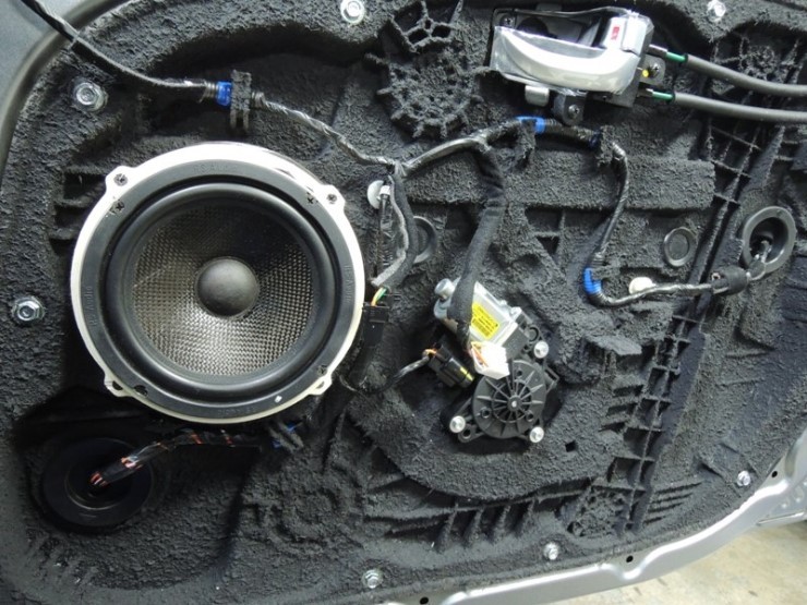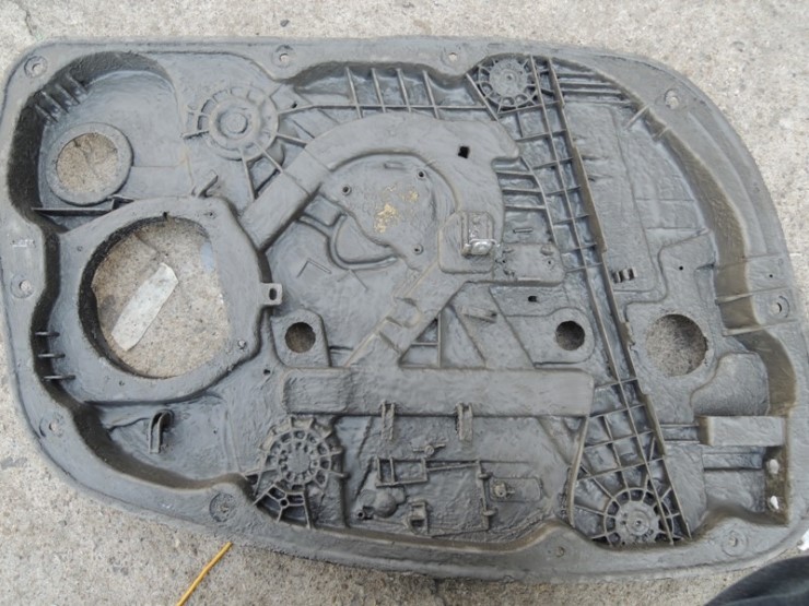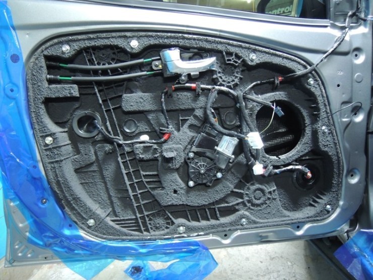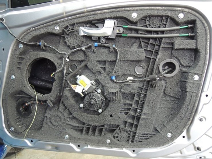 작업을 위해 도어패널을 탈거하고, 유리를 탈착한 다음, 내부의 플라스틱 커버를 제거하고