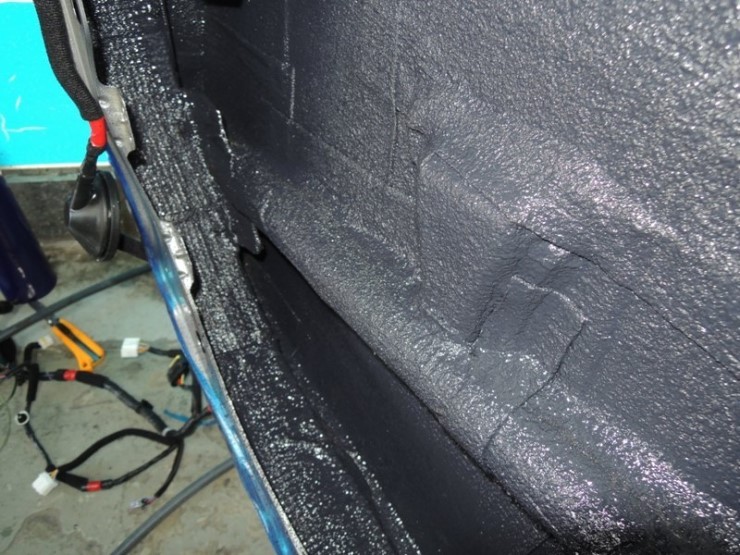 도어안쪽의 댐핑재를 도포한 모습이구요