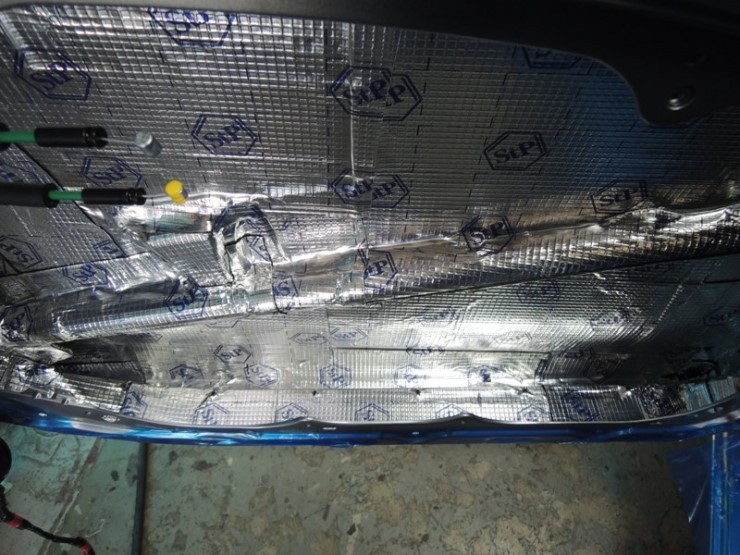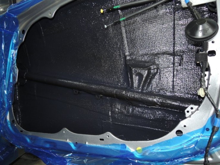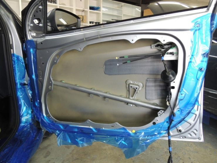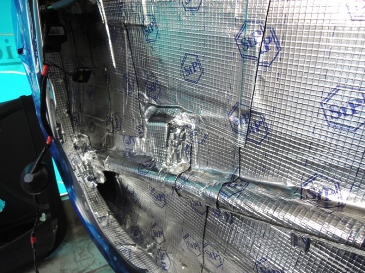 작업에 사용된 매트는 러시아산 stp실버 매트입니다. stp매트는 일반의 매트에 비해 알루미늄의 박이 두꺼우며, 무게가 가볍고, 친환경의 제품이여서 작업후 까스가 발생하지 않는 제품입니다. 안쪽의 구석진곳 부터 철저하고 꼼꼼하게 붙여진 상태이며, 최대한 도어를 인클로져화 시켜주었습니다.