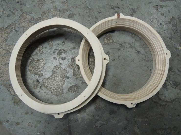방음방진을 마무리하고 스피커 장착을 위해 자작나무 아대를 제단한 상태이며,