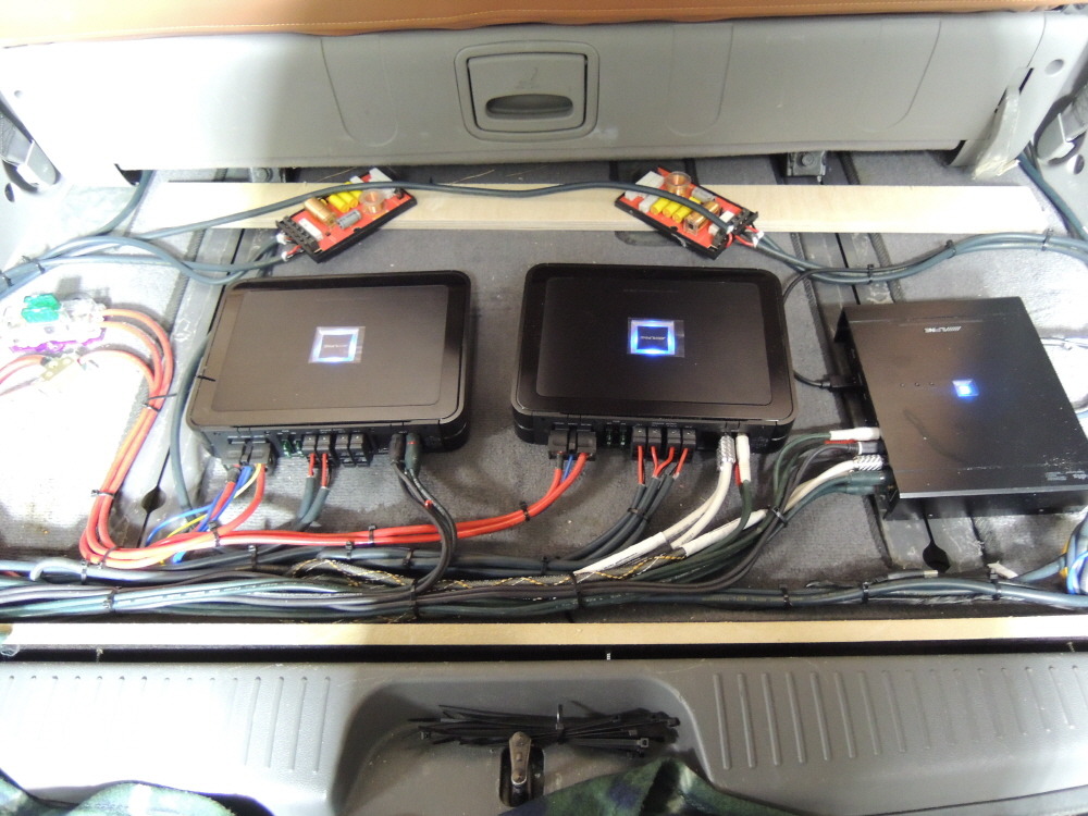 트렁크에 알파인 엠프와 패시브,배선 작업사진입니다.