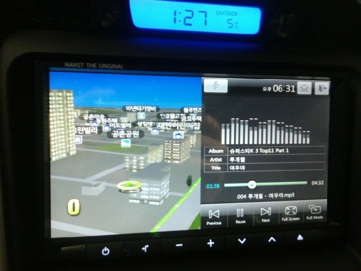 네비게이션과 오디오의 pip화면입니다. dvd,dmb,내장하드,오디오등 pip작동됩니다.