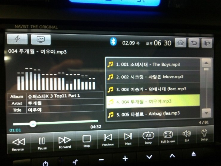 yf소나타에 장착을 완료후 전원을 넣고 음악을 들어봅니다.