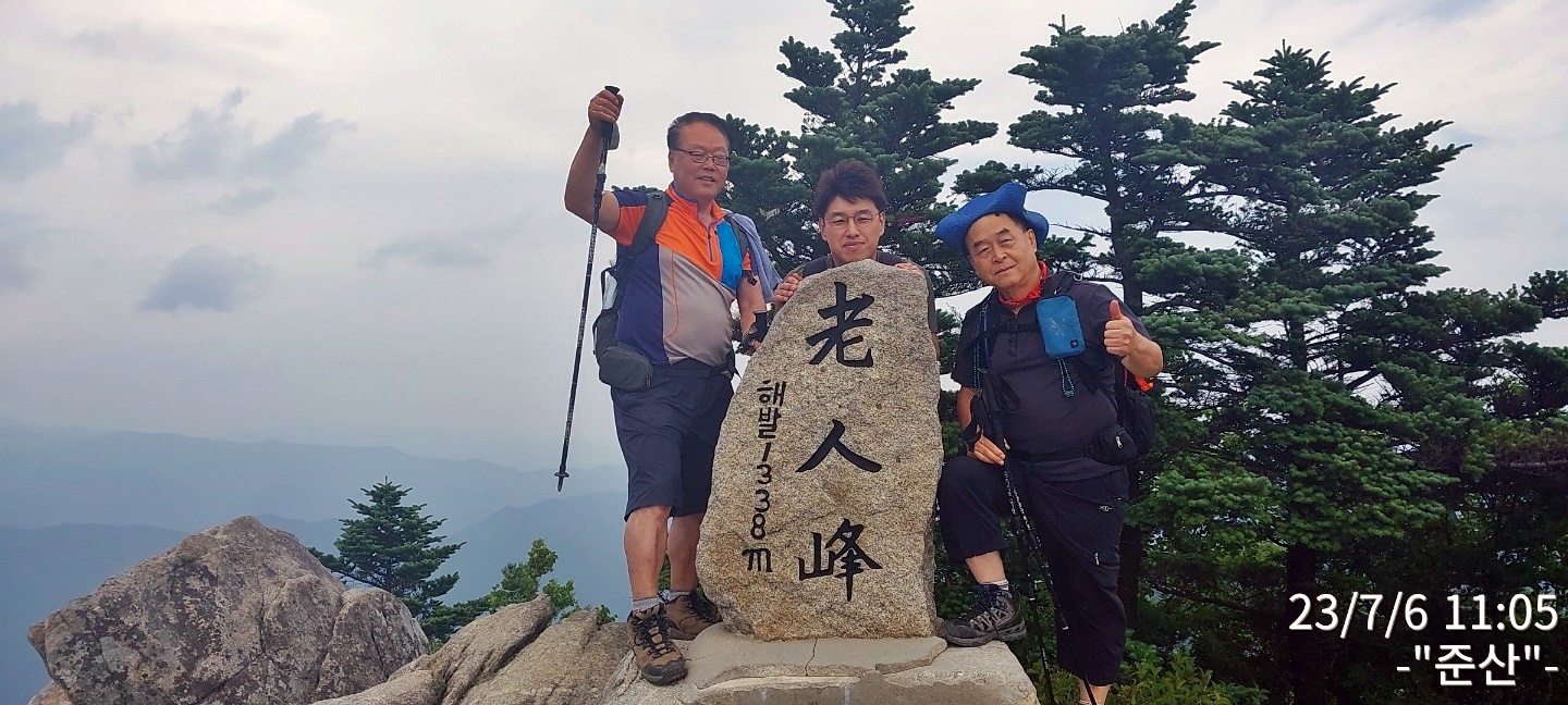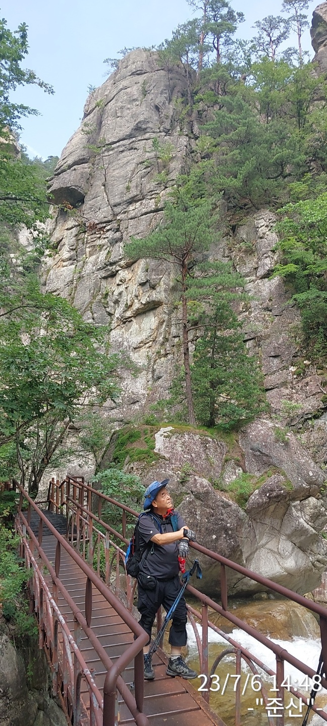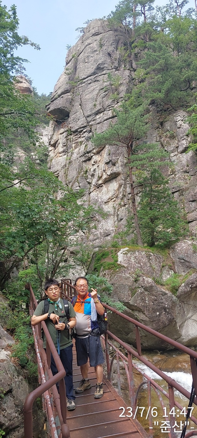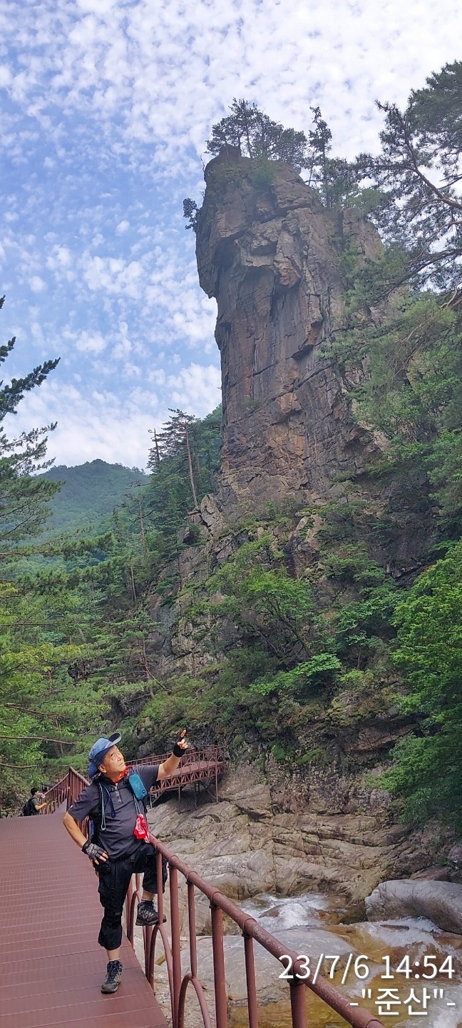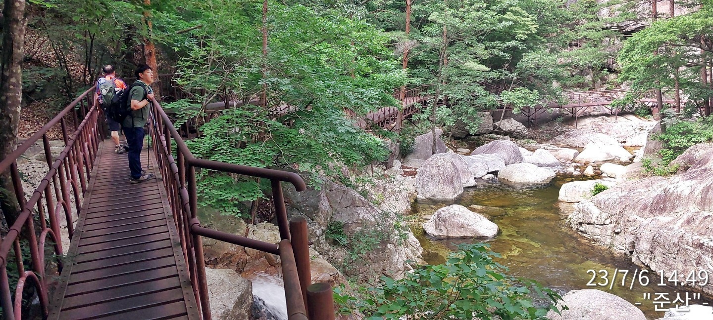 2023년 7월 6일(목) = 산행기점 진고개(960m) 출발~ 1243m ~노인봉(1338m)~ 산장~낙영폭포~오작담~광폭~삼폭~
