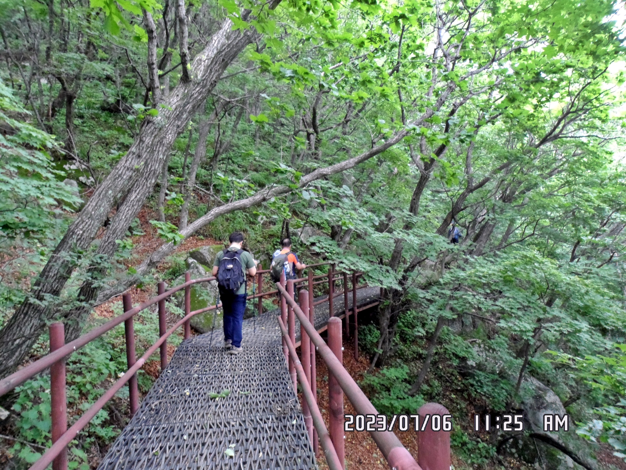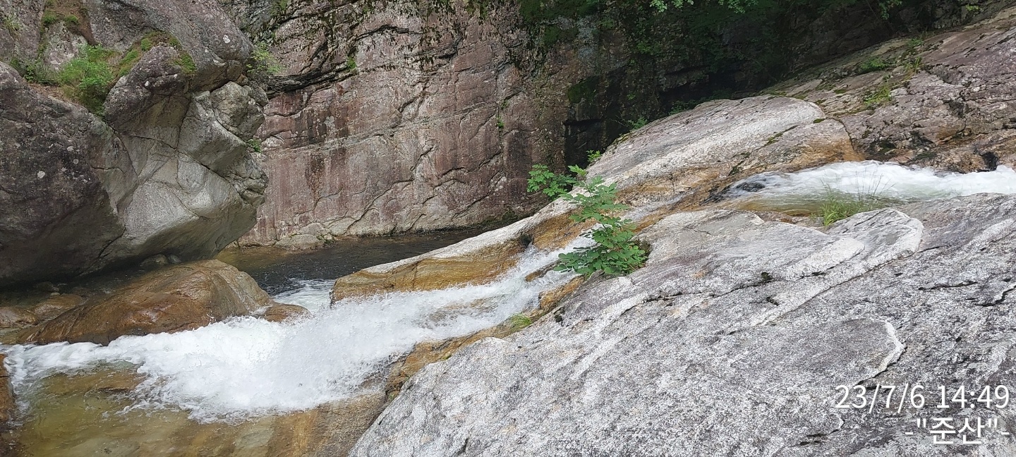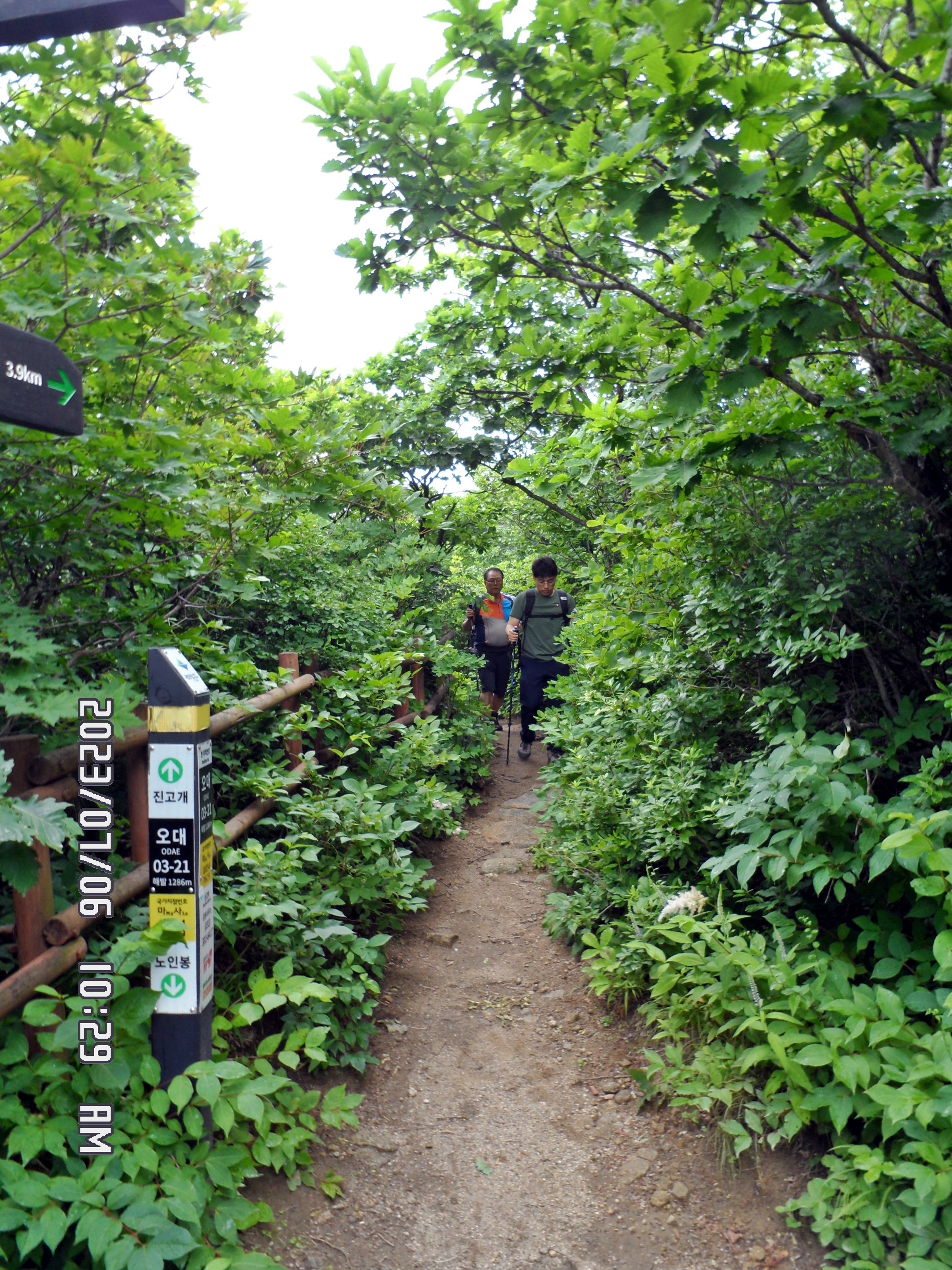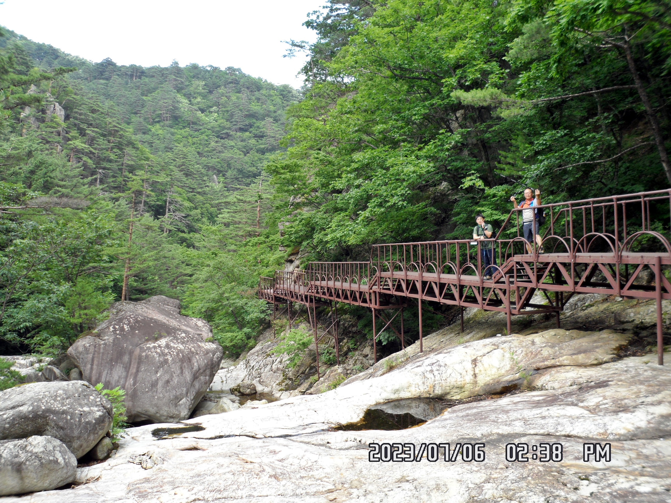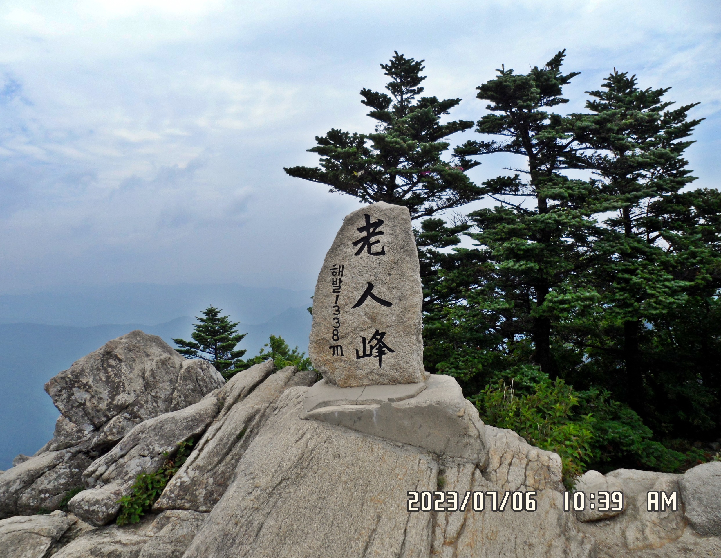2023년 7월 6일(목) = 산행기점 진고개(960m) 출발~ 1243m ~노인봉(1338m)~ 산장~낙영폭포~오작담~광폭~삼폭~