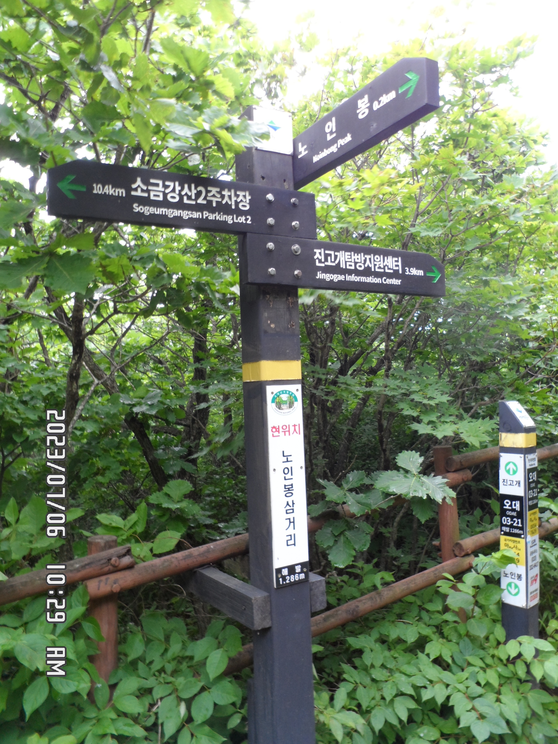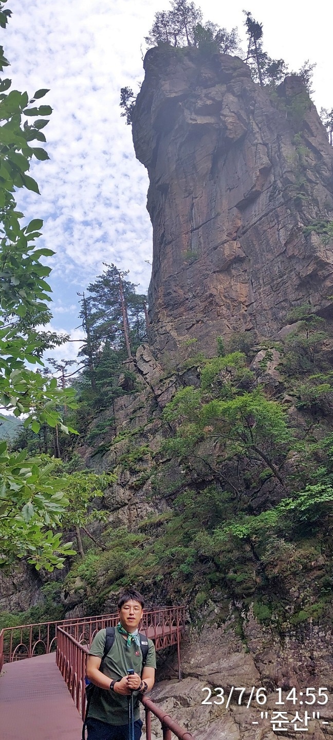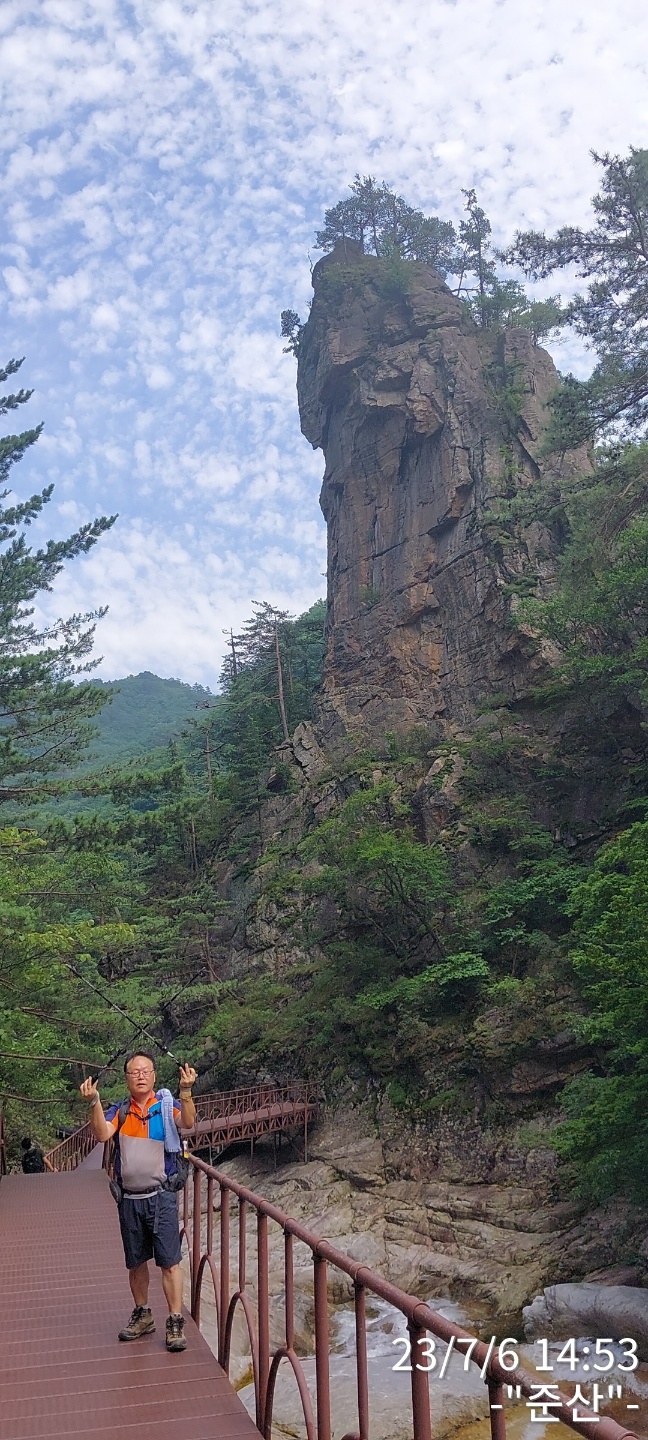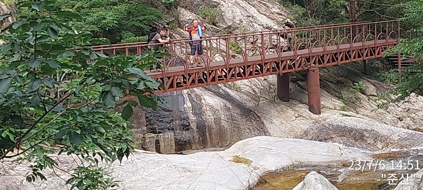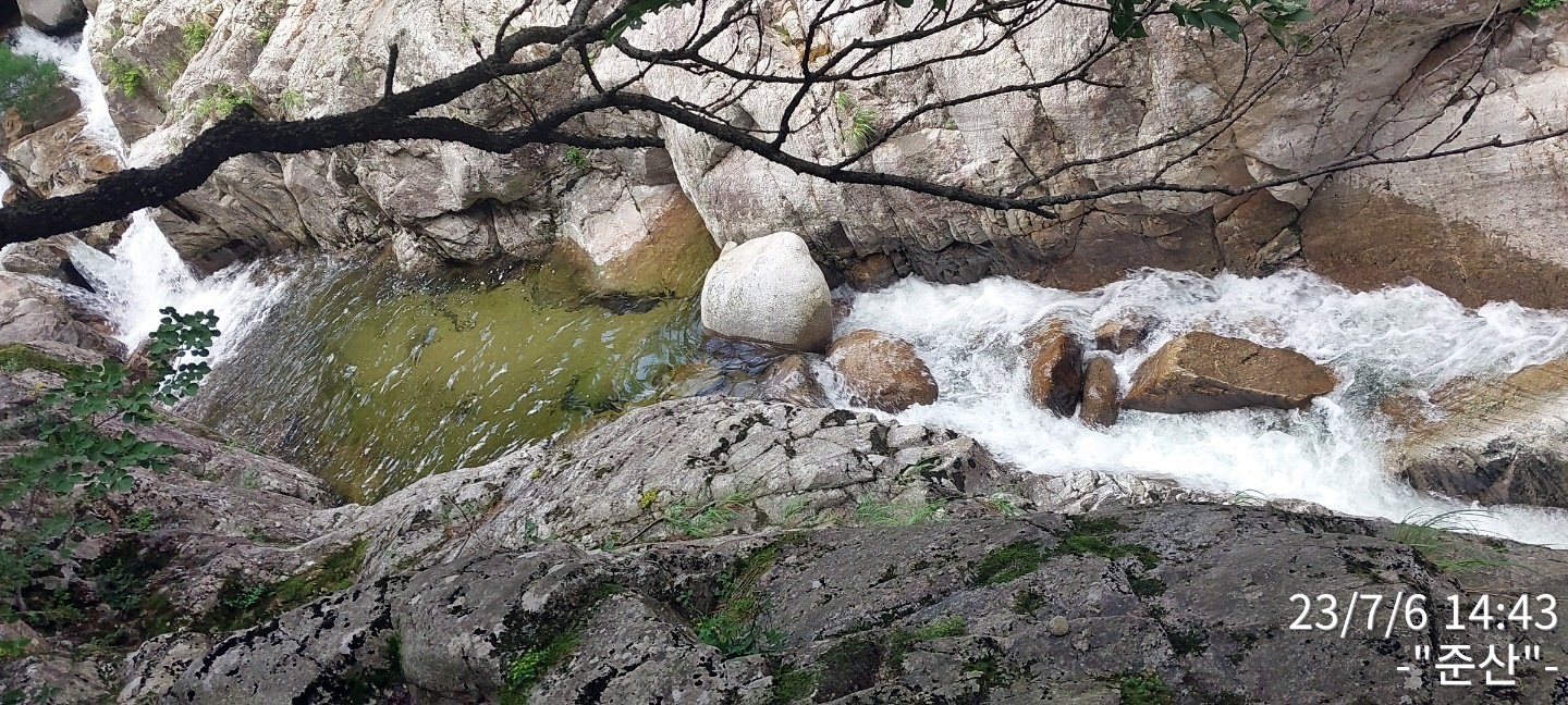 2023년 7월 6일(목) = 산행기점 진고개(960m) 출발~ 1243m ~노인봉(1338m)~ 산장~낙영폭포~오작담~광폭~삼폭~