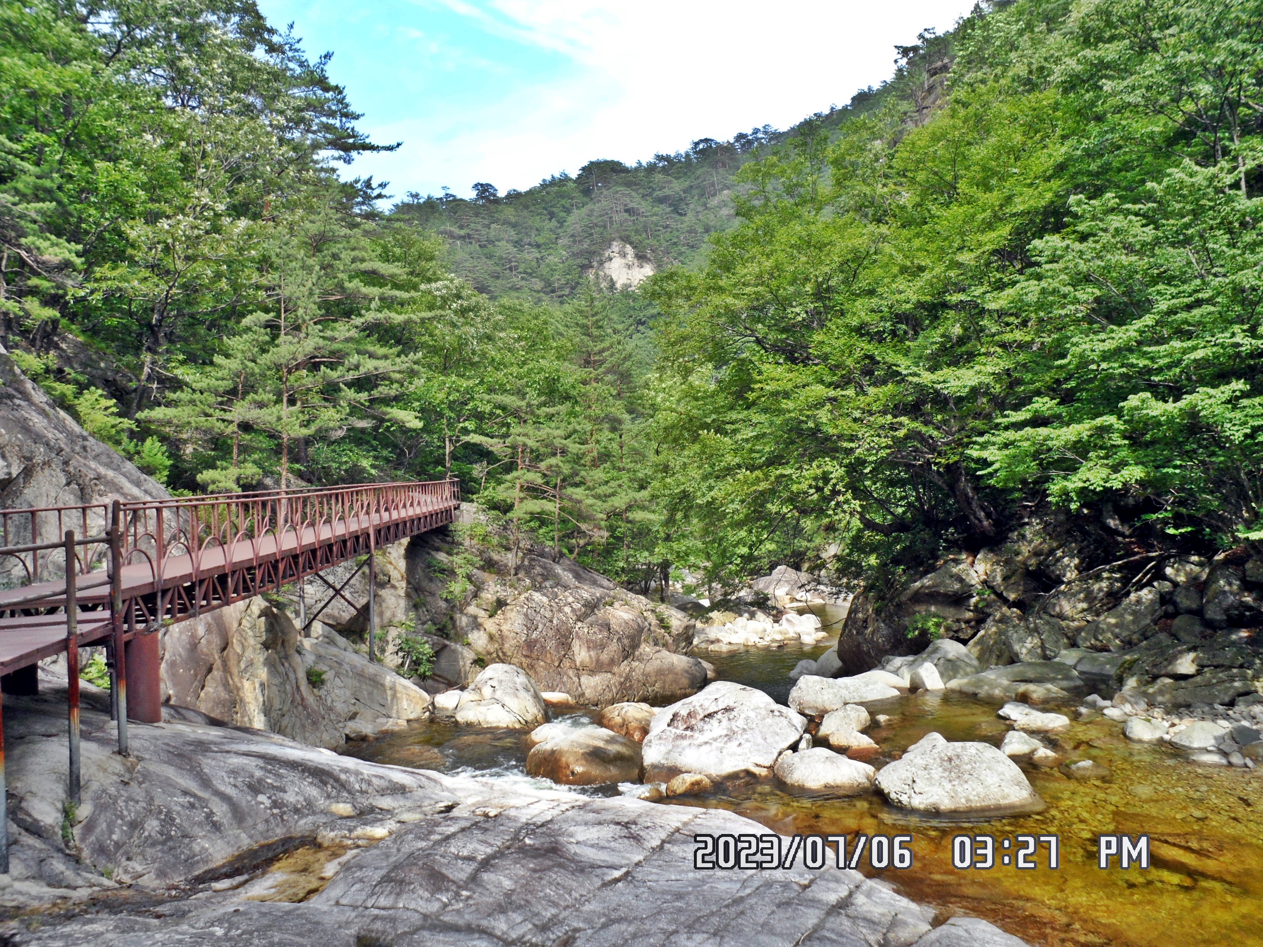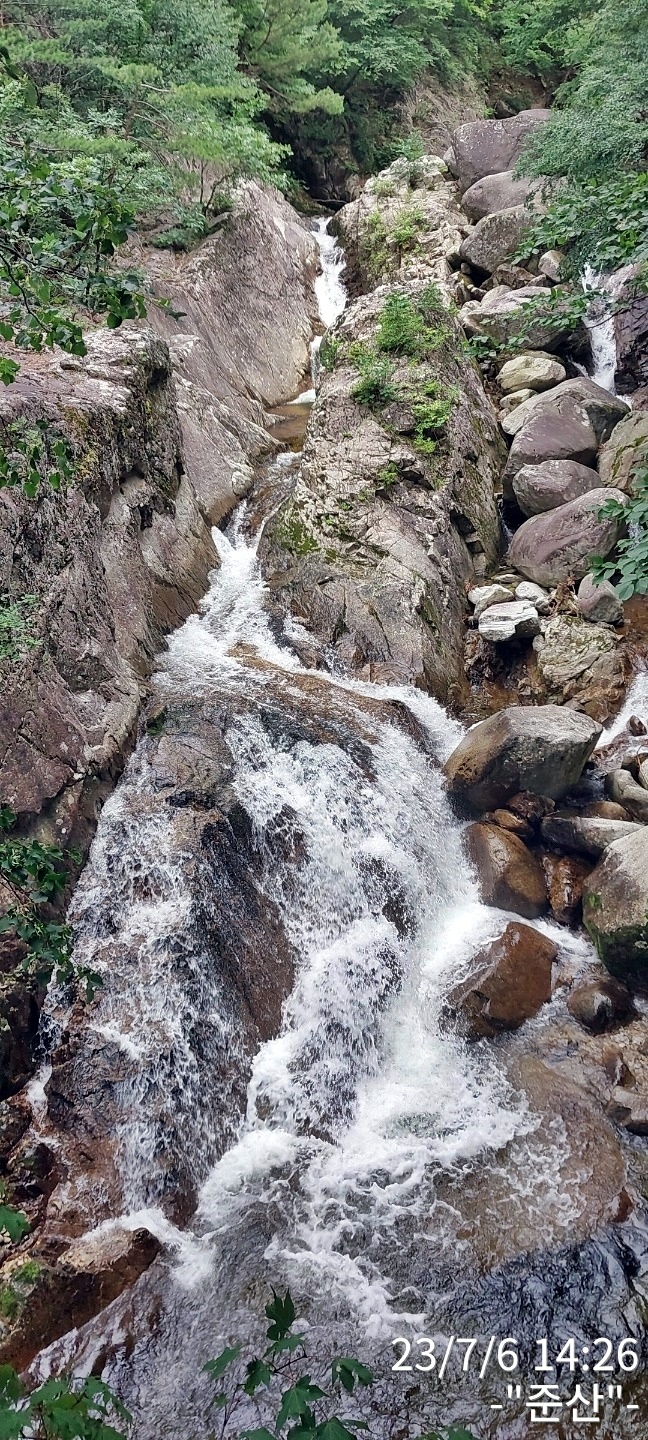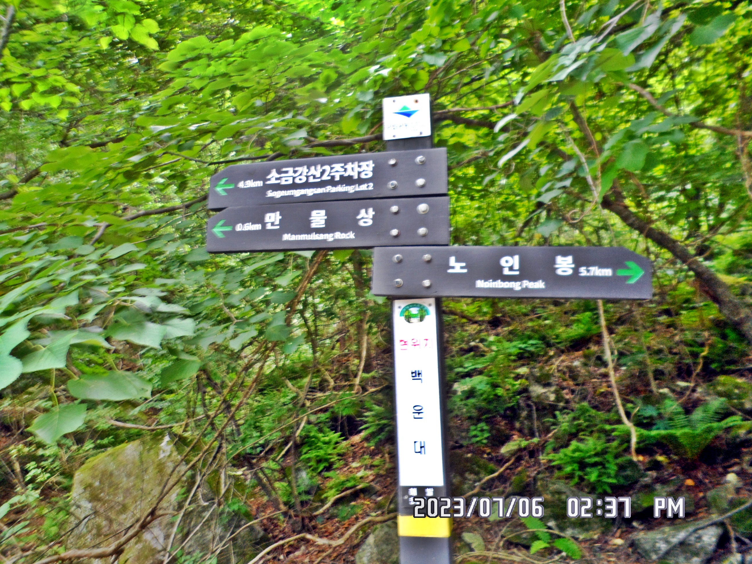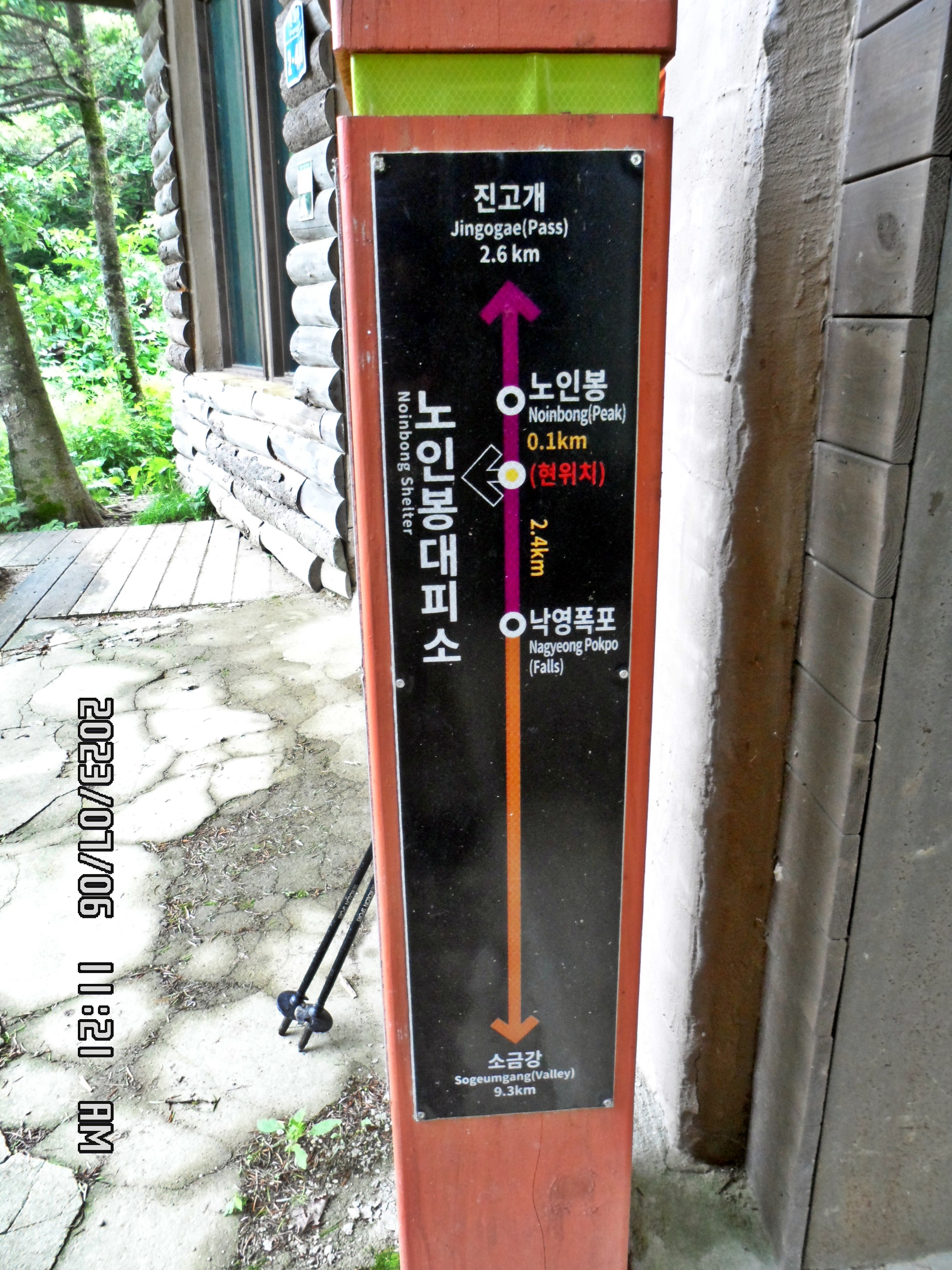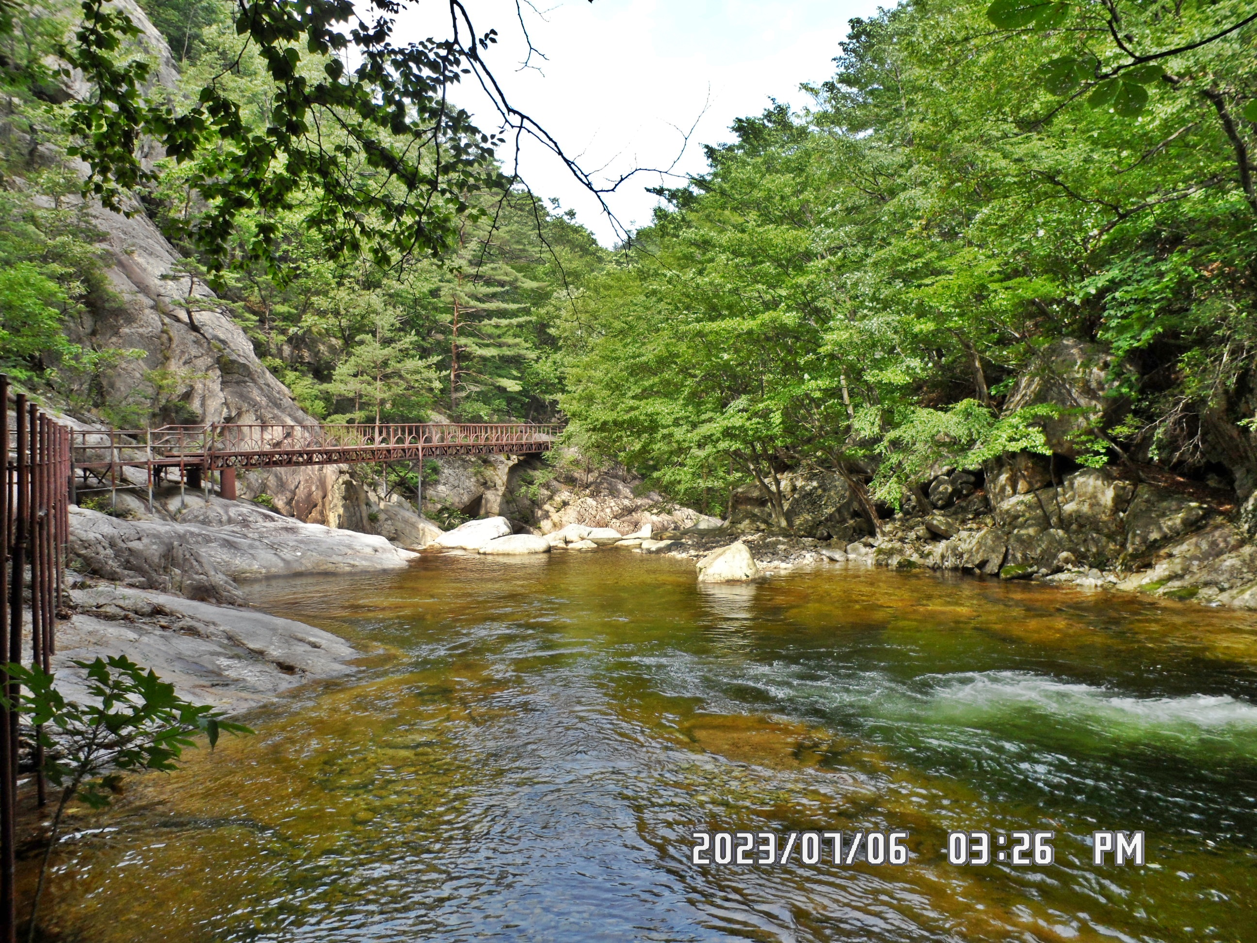 2023년 7월 6일(목) = 산행기점 진고개(960m) 출발~ 1243m ~노인봉(1338m)~ 산장~낙영폭포~오작담~광폭~삼폭~