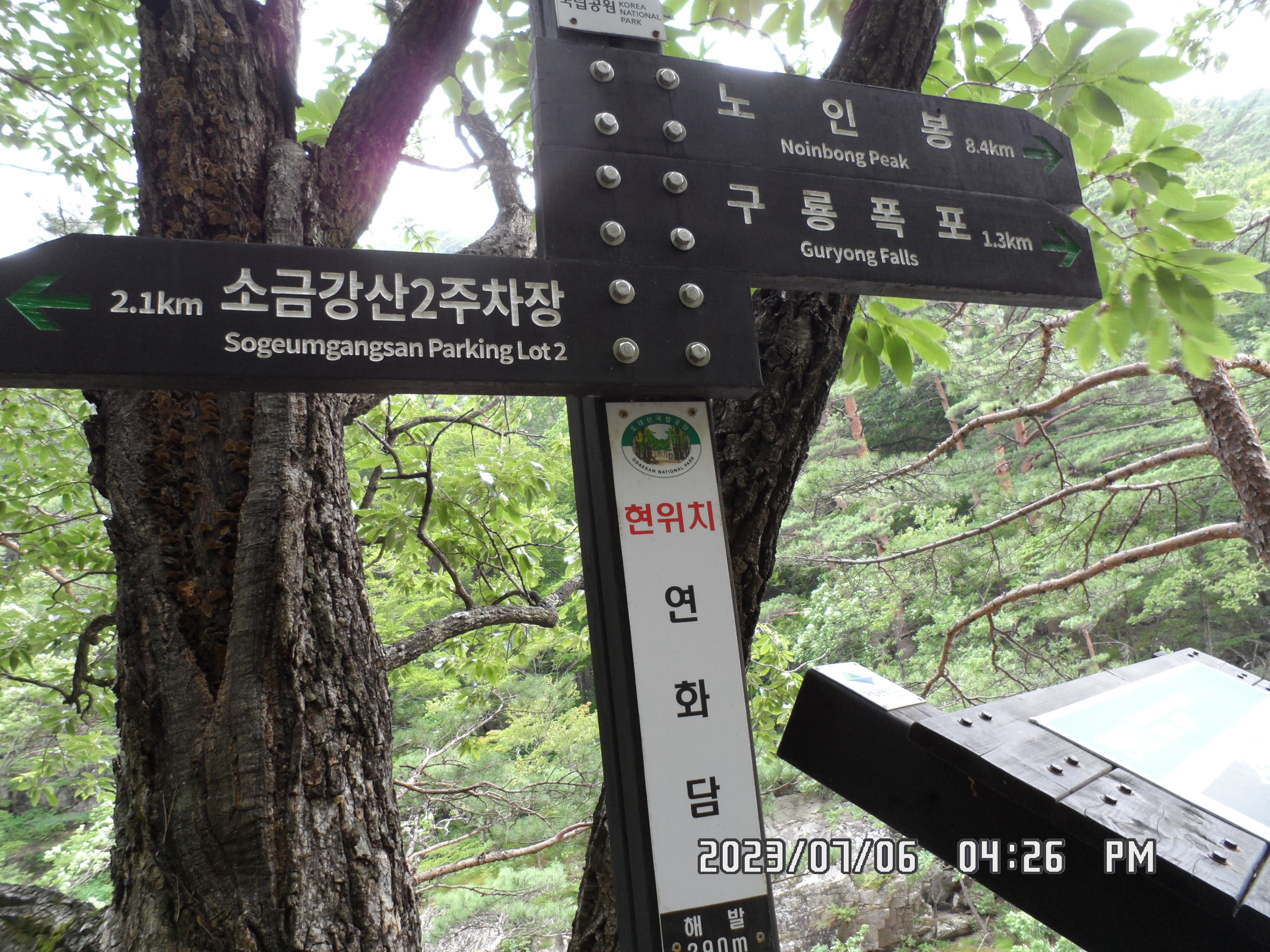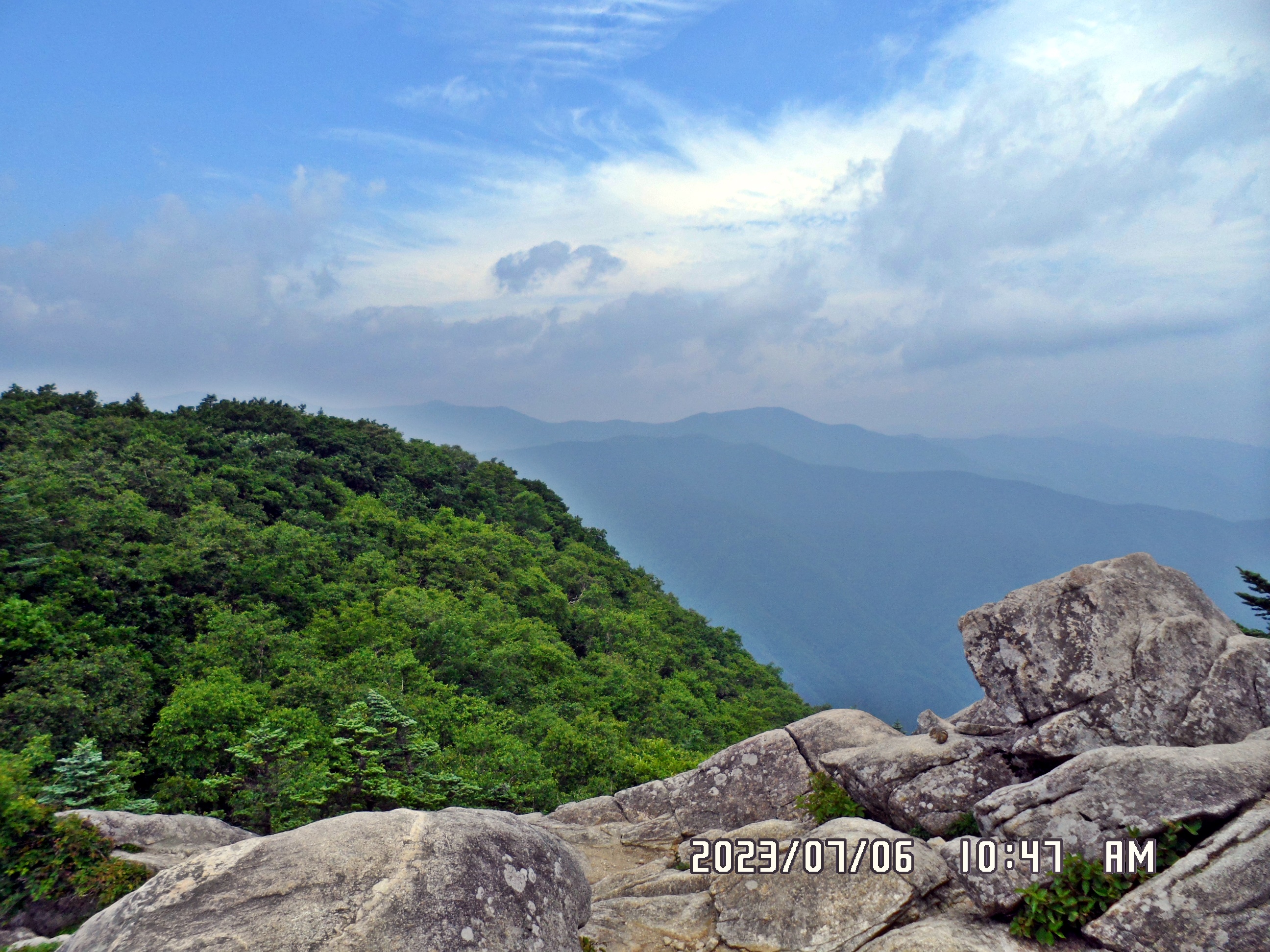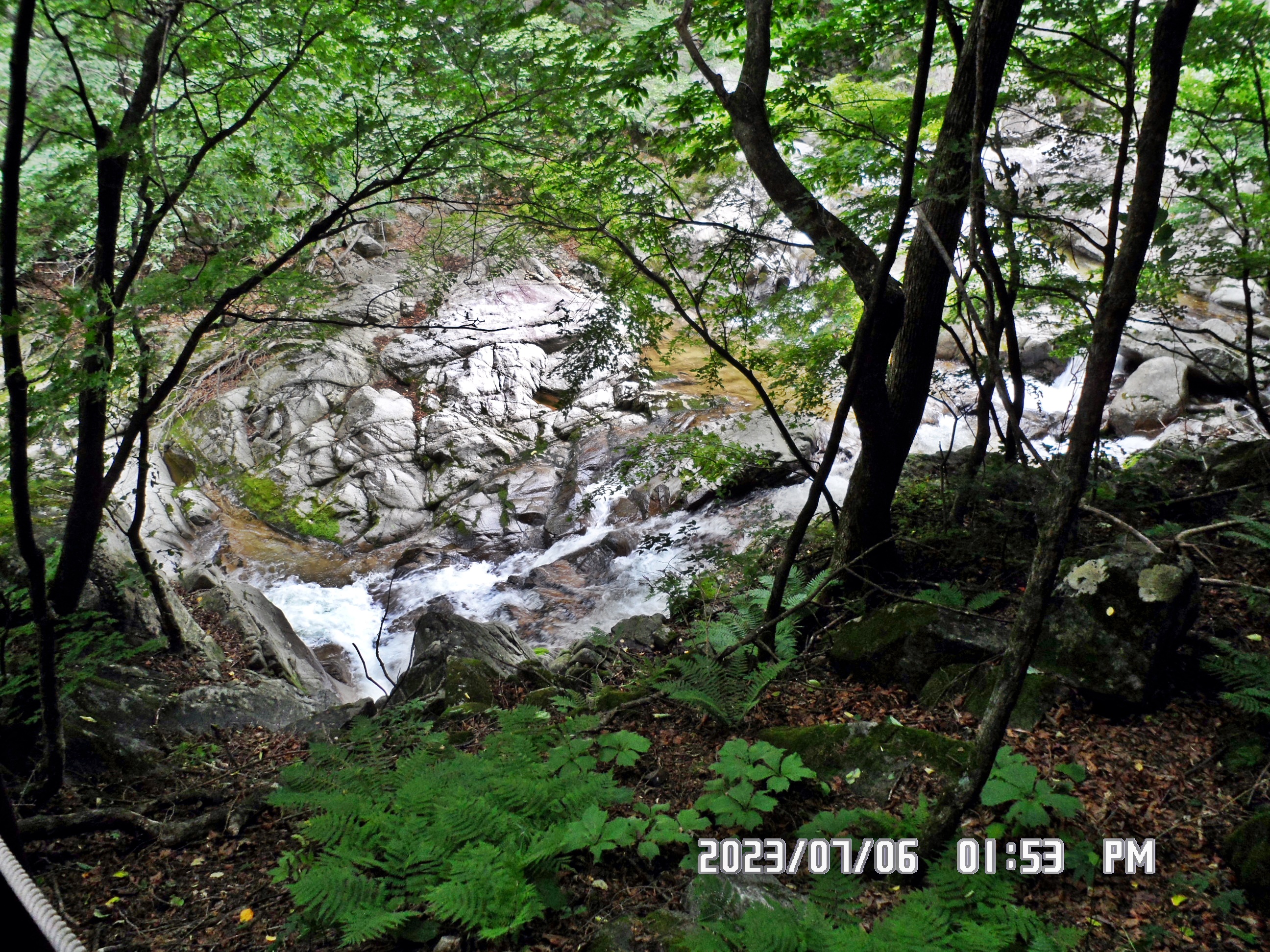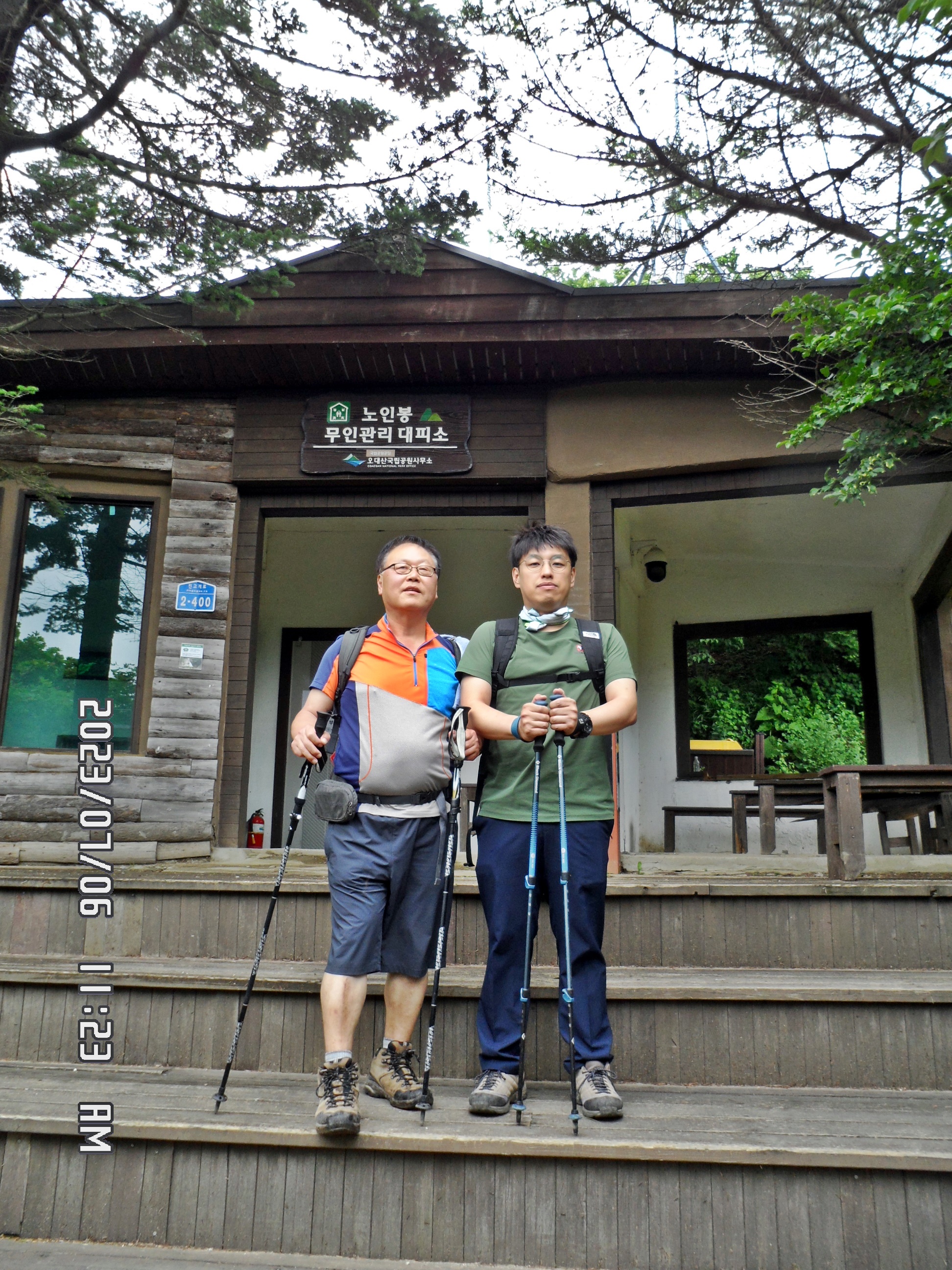 2023년 7월 6일(목) = 산행기점 진고개(960m) 출발~ 1243m ~노인봉(1338m)~ 산장~낙영폭포~오작담~광폭~삼폭~
