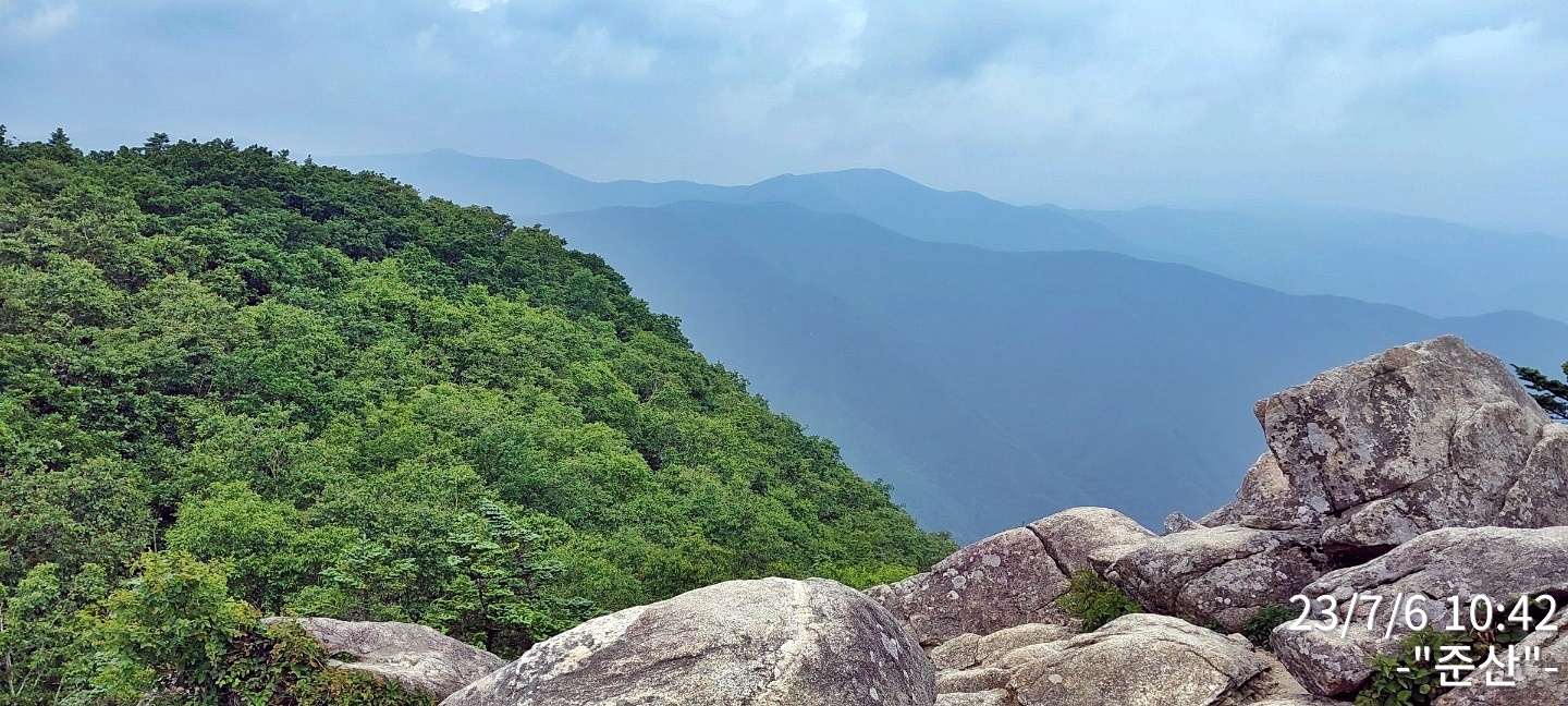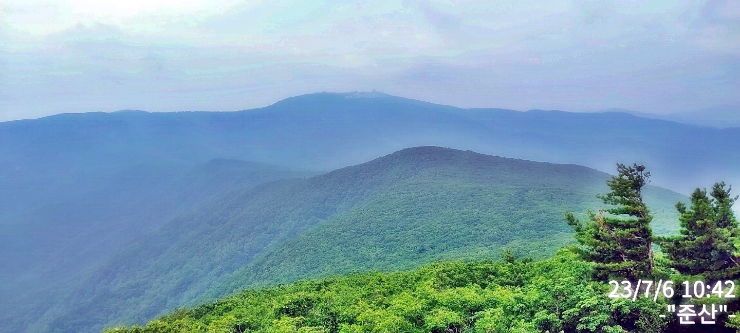 노인봉에서 바라본 백두대간 연릉의 오대산 비로봉과 동대산이 광대한 자연을 펼치고 있습니다,