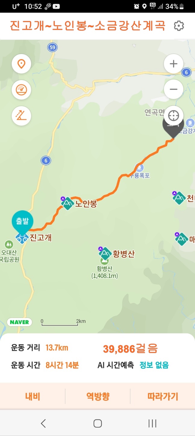 진고개~ 노인봉(1339m) ~소금강산 계곡트레킹