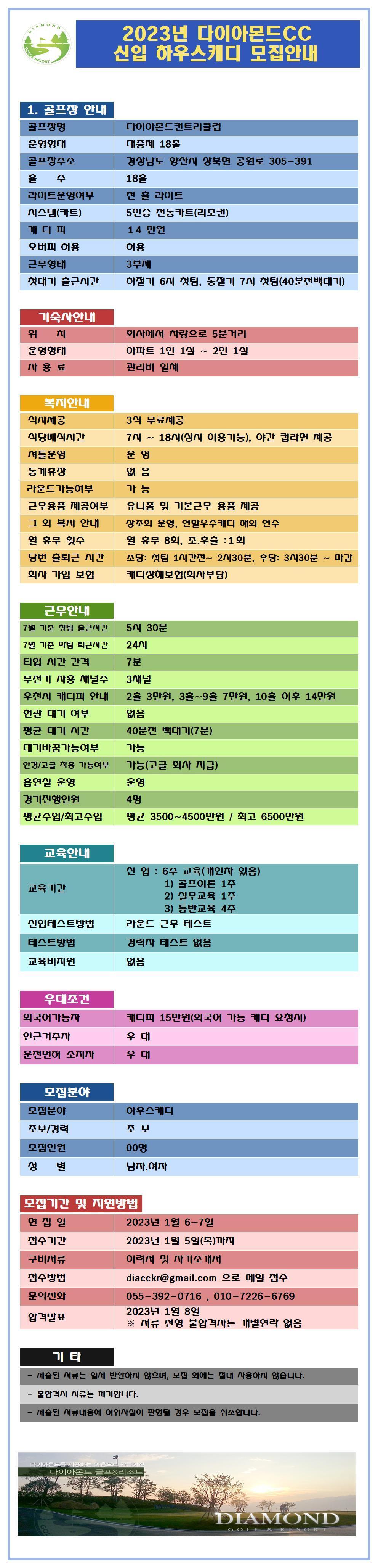 2023년 다이아몬드cc 신입하우스캐디 모집합니다. 작성자2on2putt|작성시간23.02.01|조회수169 목록 댓글 0 글자크기 작게가 글자크기 크게가 다음검색 현재 게시글 추가 기능 열기 북마크 공유하기 신고 센터로 신고 댓글 댓글 0 댓글쓰기 답글쓰기 댓글 리스트