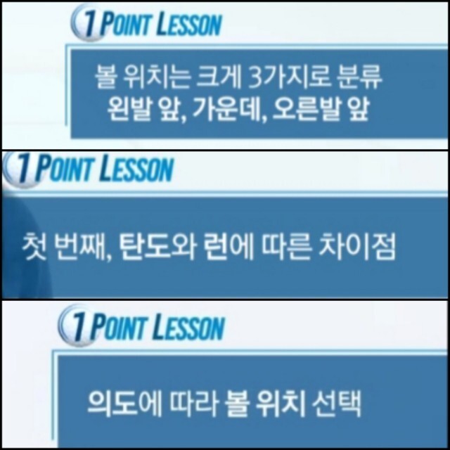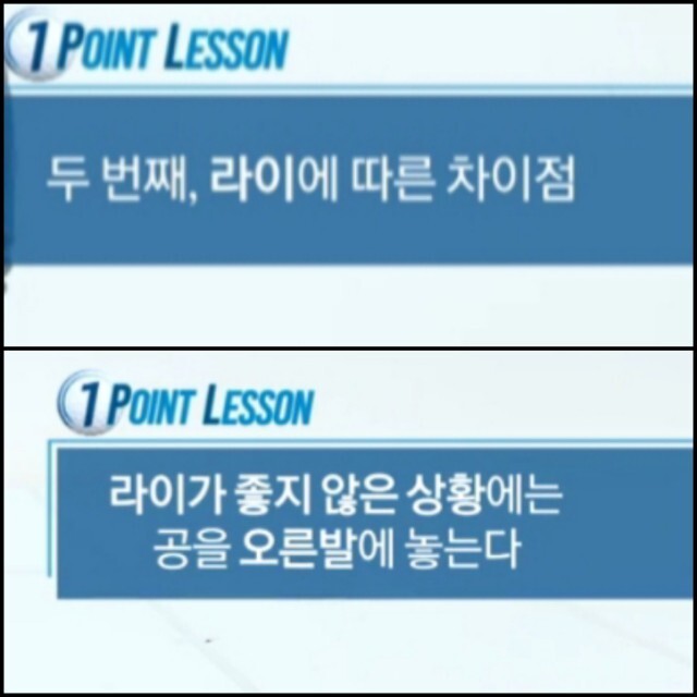 라이가 좋지 않은 지역(경사,맨땅) 일수록 볼을 오른발쪽에 놓는다.