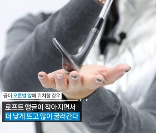 반대로 오른발에 가까울수록 로프트 앵글은 작아지며 볼은 더 낮게 뜨고 많이 구른다.