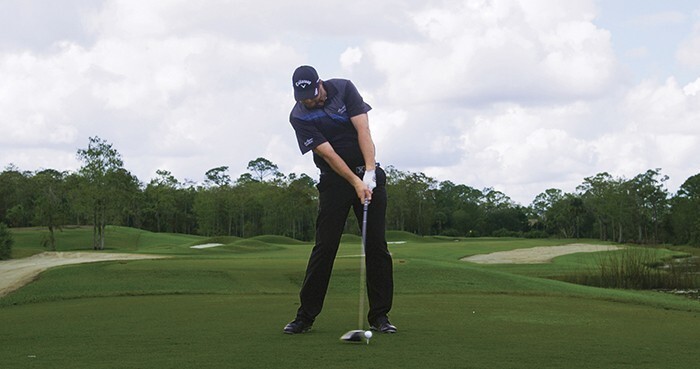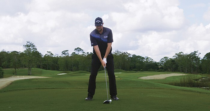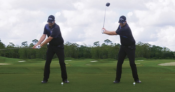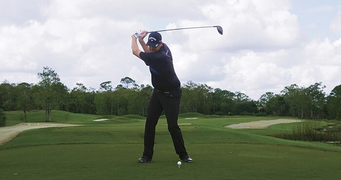 그의 머리와 상체는 어드레스 때보다 조금 더 볼 뒤에 있다. 맥데이드는 "이것은 마크가 볼을 치기 위해 클럽을 가져가는 방식에 적합한 자세"라고 설명한다.