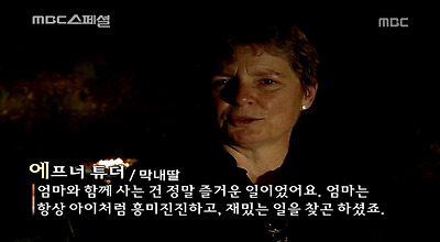 동화, 삽화 작가이자, 그녀만의 아름다운 정원을 만들어서 유명하신분인듯한데, 꽤 어렵게 살아오시다가 동화작가로 활약을 하시면서 살림이 좀 낳아졌고, 이혼후에 아이들을 키우면서 사랑과 정성으로 참 잘 키우신듯하다. 자녀들이 아직까지도 어린시절을 잊지못하고, 그녀를 그리워하고, 추억하고 있는듯한데, 그녀의 둘째아들의 부인이 한국사람이고 남편도 한국말을 좀 해서 재미있고, 쉽게 접할수 있었던 다큐...