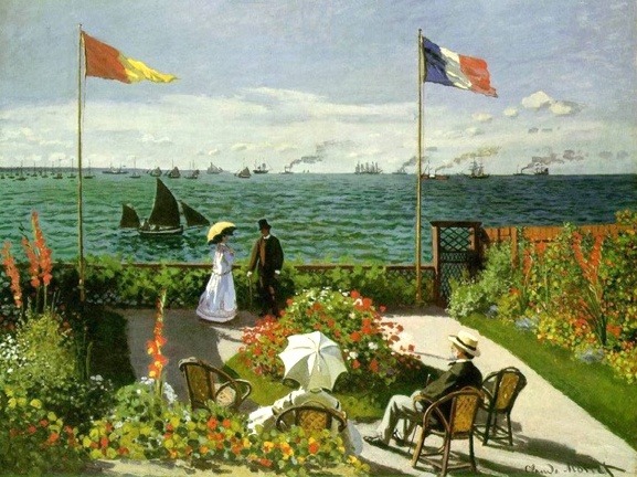 르아브르 근처에 있는 생 타드레스의 해변 풍경을 그린 작품으로 화면 앞 쪽에 앉아있는 인물은 모네의 부친이다.
