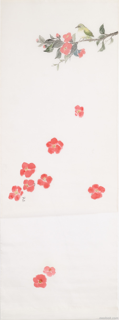 - 심홍 이소영_눈 위에 살포시_비단 염료_155×56cm_2018