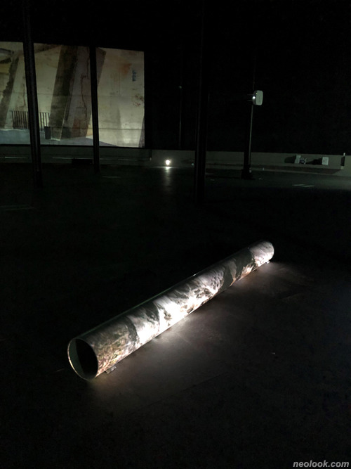- 금민정_들어낸 시간 separated time_기둥, 혼합재료,단채널 영상, 맵핑_300×30×30cm, 00:03:50_2018