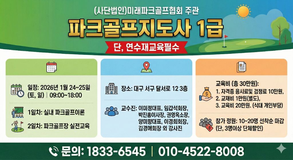 #사단법인미래파크골프협회 주관으로 #파크골프지도사 1급 #뉴스포츠지도사 1급