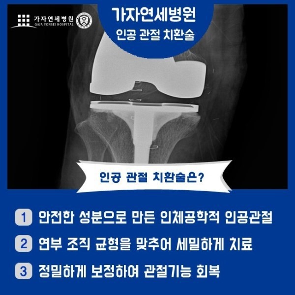 인공 관절 치환술은 관절의 손상이 회복하기 힘들 정도로 심하고
