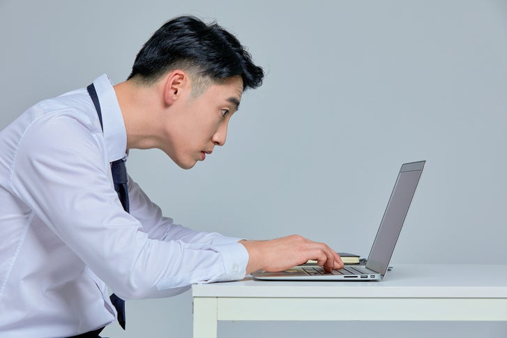 2. 노트북, 모니터를 눈높이보다 낮게 배치한 경우