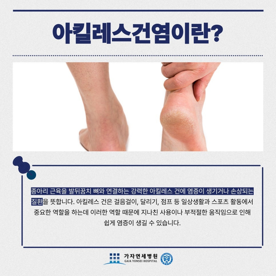 아킬레스건염은 발뒤꿈치 뼈와 종아리 근육을 연결하는 힘줄에 염증이 생기는 질환으로, 운동 선수뿐 아니라 일반인에게도 흔히 발생합니다.
