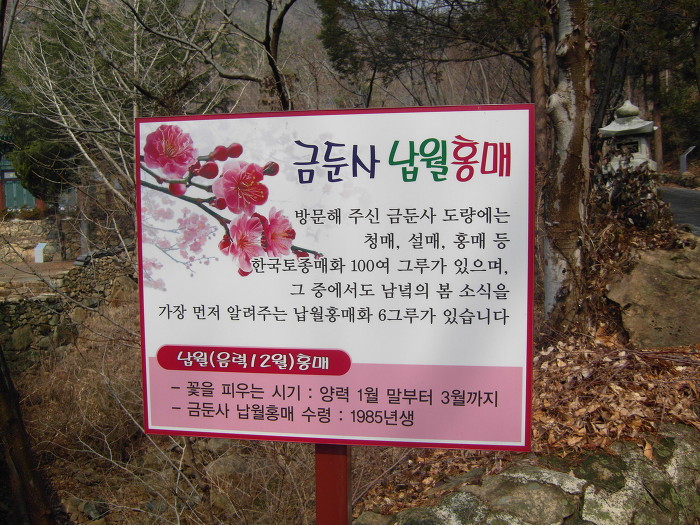 순천 낙안면 금전산의 금둔사에는 납월매가 핀다.