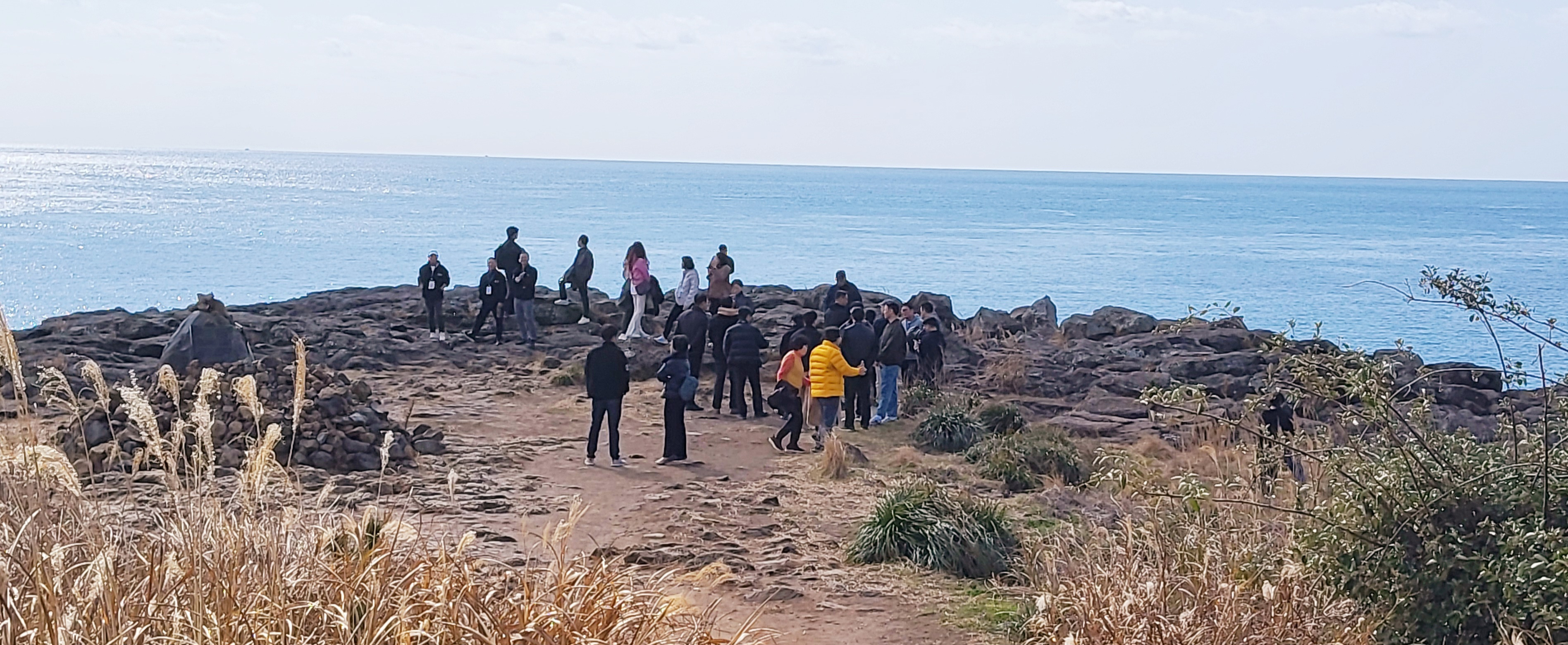 | 서울대학교 경영전문대학원(MBA) 신입생 오리엔테이션 현장학습 일시 : 2025. 2. 14(금) 10:00~12:00 장소 : 올래 7코스 돔배낭골에서 황우지해변가지 주관 : 제주기획 대표(박민용) 해설 : 김원순(제주문화관광해설사) 주제 : 7코스 구간에서 만나는 역사, 문화, 생태 이야기 |