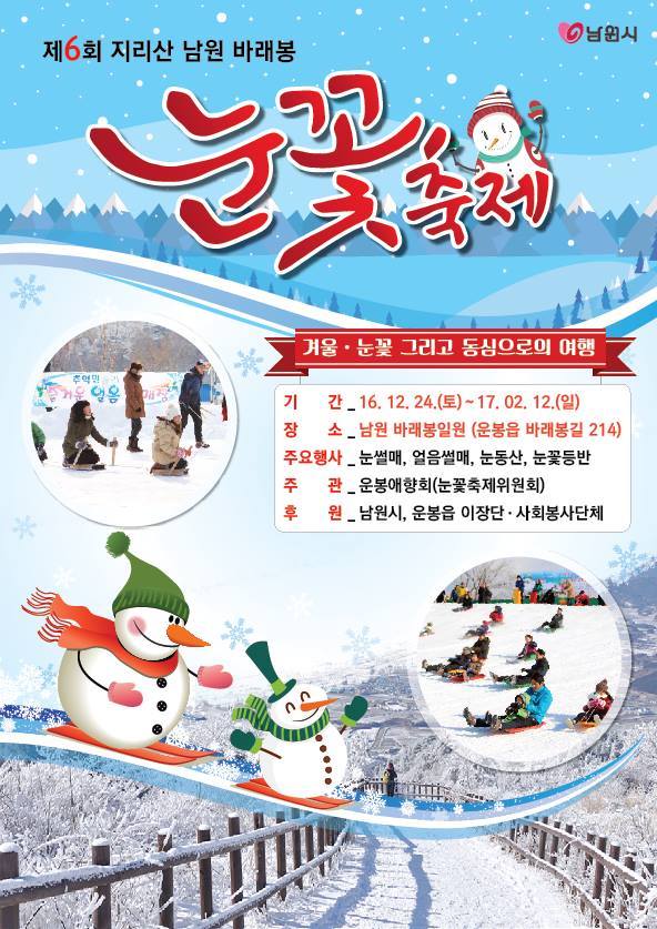 제6회 2016 지리산 남원 바래봉 눈꽃축제 작성자매동마을 지킴이|작성시간16.12.10|조회수108 목록 댓글 0 글자크기 작게가 글자크기 크게가 제6회 2016 지리산 남원 바래봉 눈꽃축제 눈 꽃 축제 - 겨울 , 눈꽃 그리고 동심으로의 여행 - 다음검색 현재 게시글 추가 기능 열기 북마크 공유하기 신고 센터로 신고 댓글 댓글 0 댓글쓰기 답글쓰기 댓글 리스트
