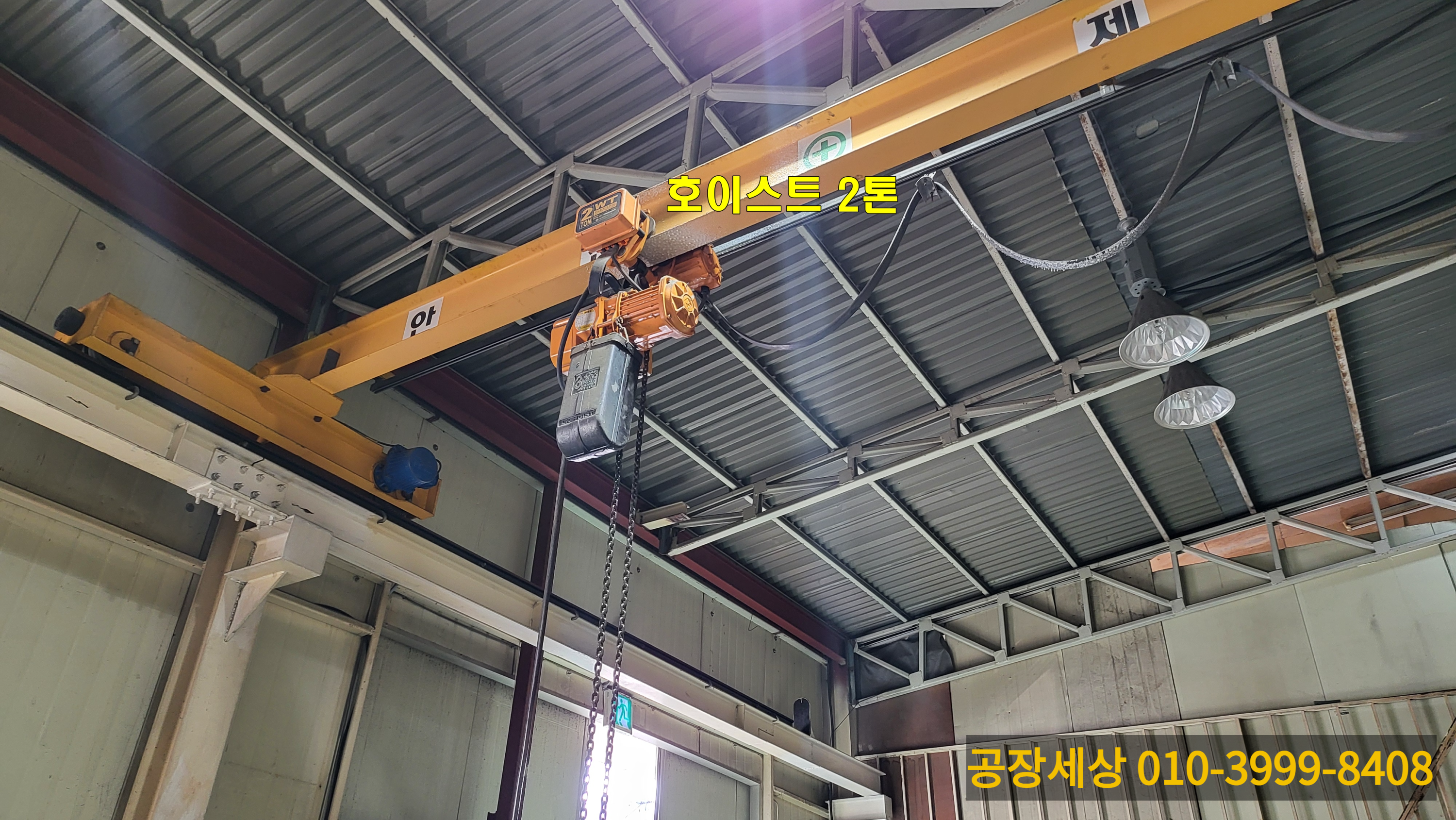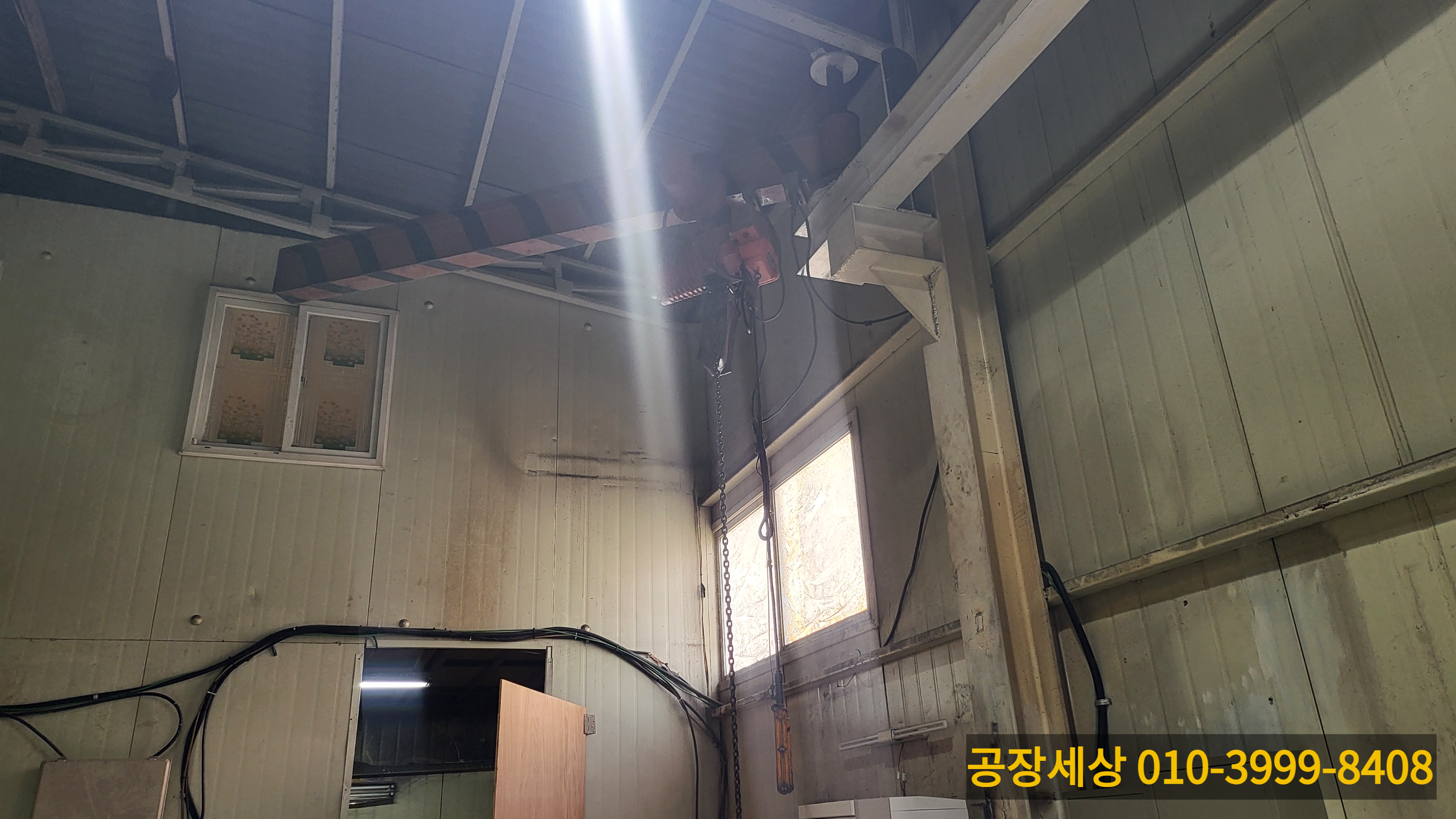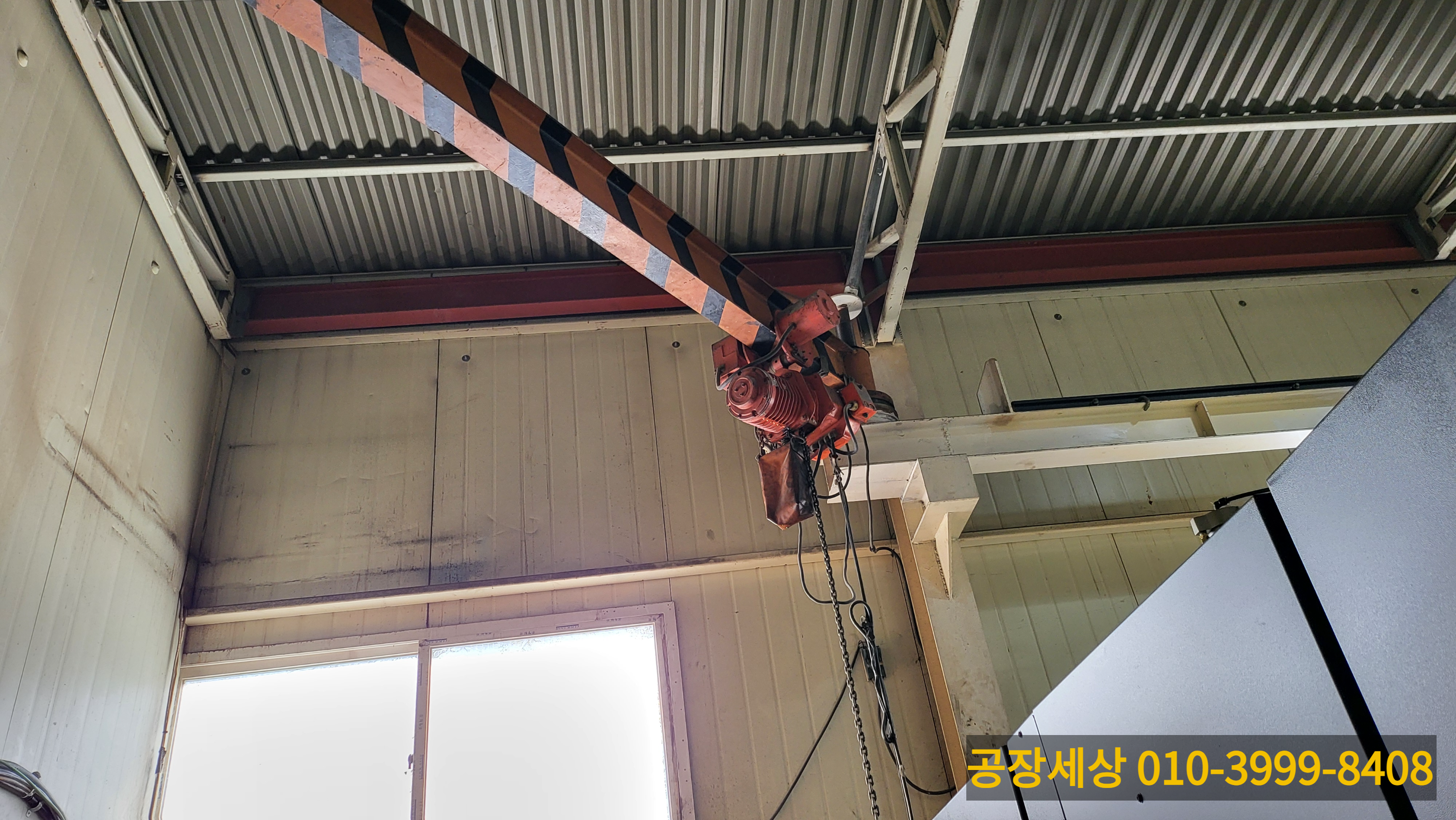 호이스트는 공장을 가로지르는 2톤 규모 호이스트가 설치되어 있으며 안쪽으로 는 간이 호이스트도 설치되어 있습니다.