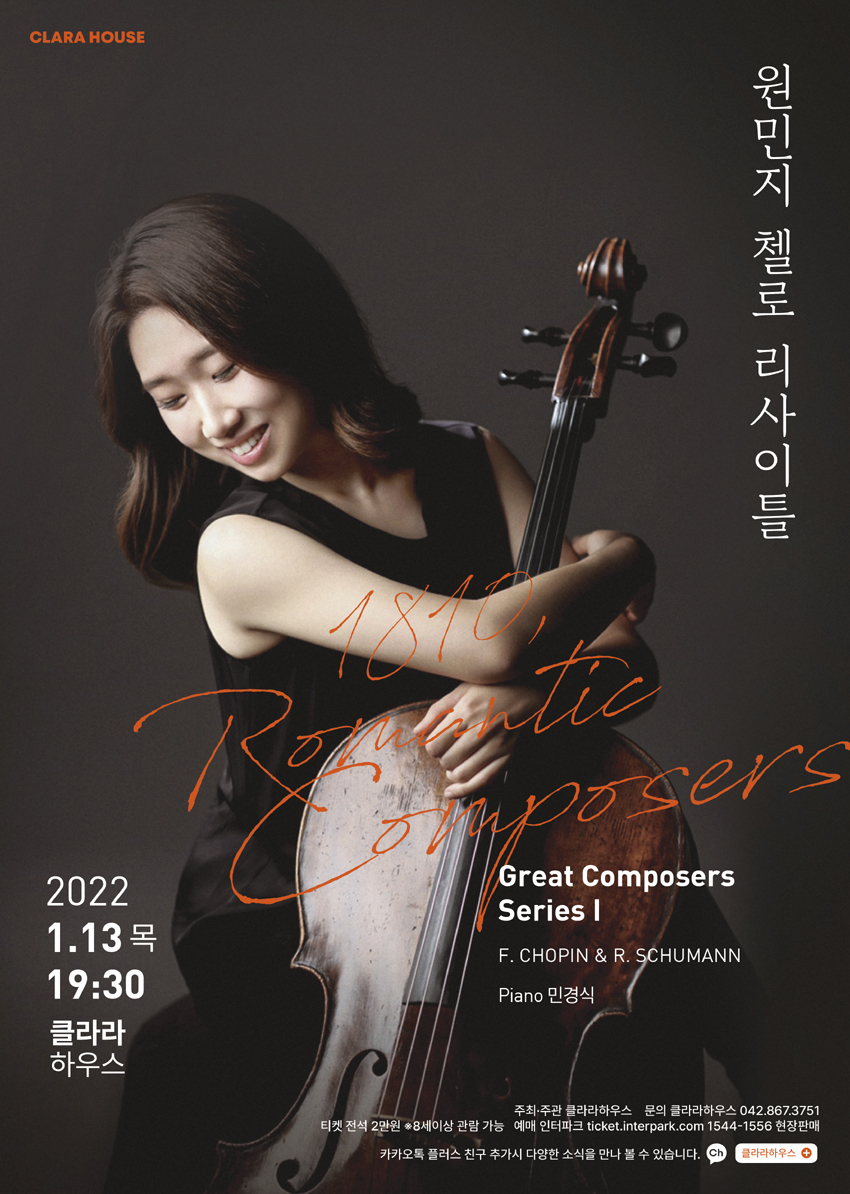 원민지 첼로 리사이틀 <1810, Romantic Composers>가 오는 1월 13일 목요일 오후 7시 30분 대전 클라라하우스에서 열린다.