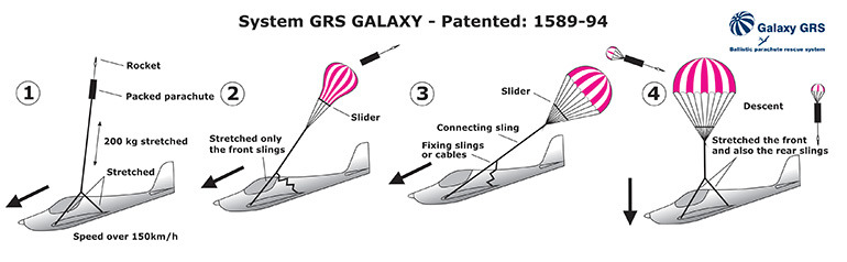 항공기에 설치하는 비상 낙하산은 보통 BRS System 이라고 하는데 이는 미국의 BRS 란 회사에서 생산되기 때문에 BRS 시스템이라고 하며 이외에도 체코의 Galaxy GRS 란 회사에서도 생산되고 있습니다.