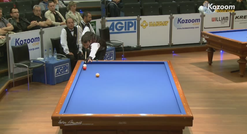 놀공 구멍치기로 투쿠션, 횡단한 후 A쿠션으로 쓰리쿠션, 그리고 빨공으로 진행하는건데..